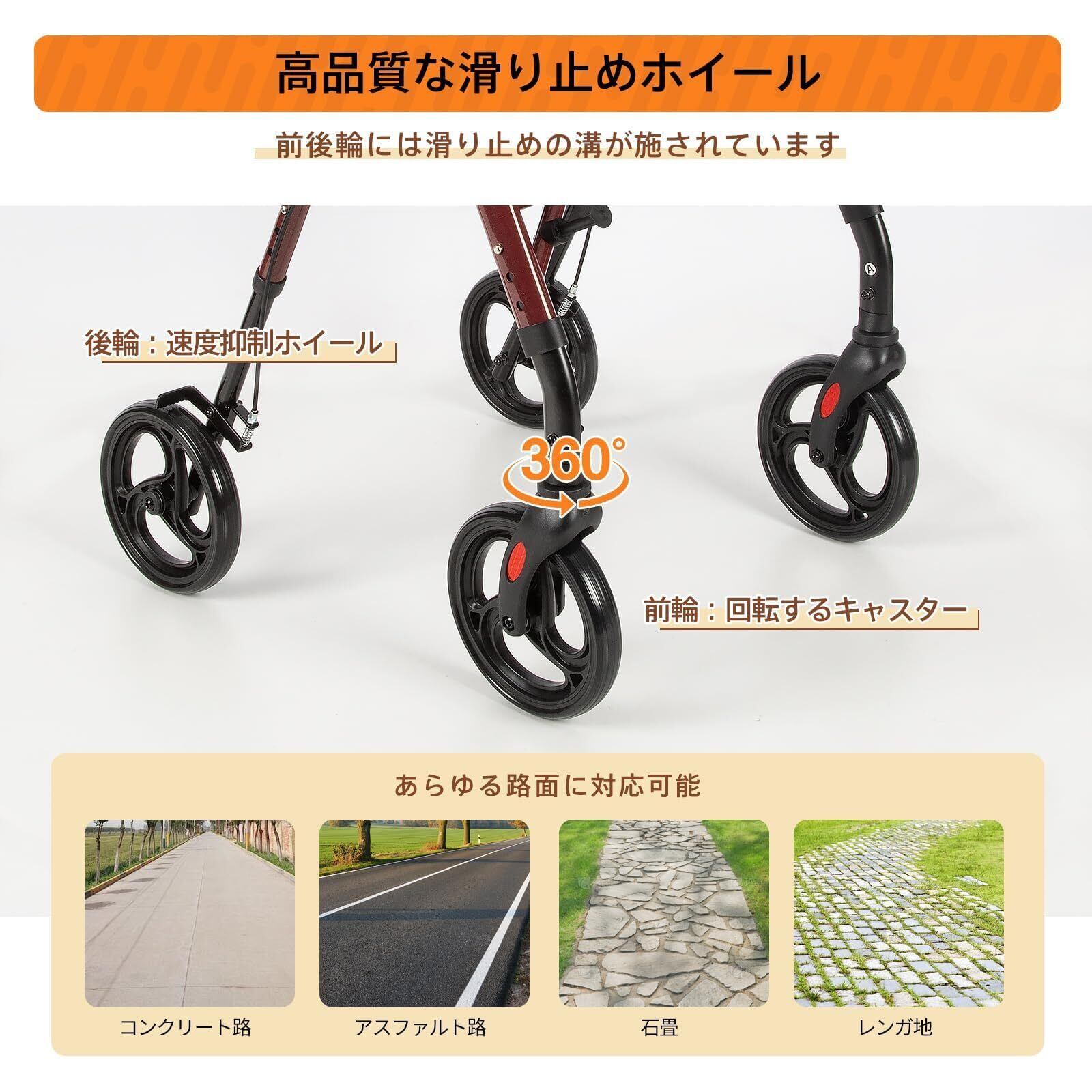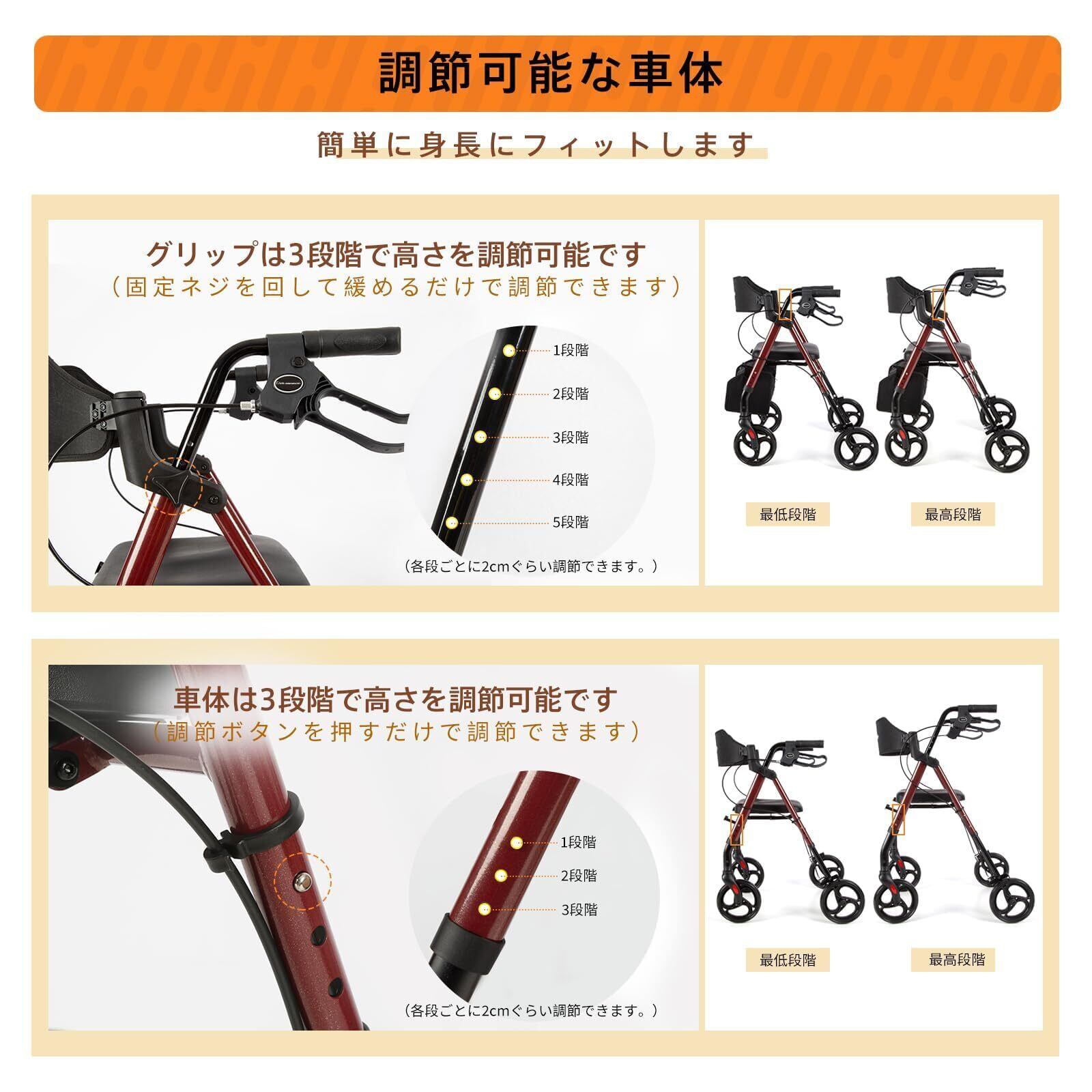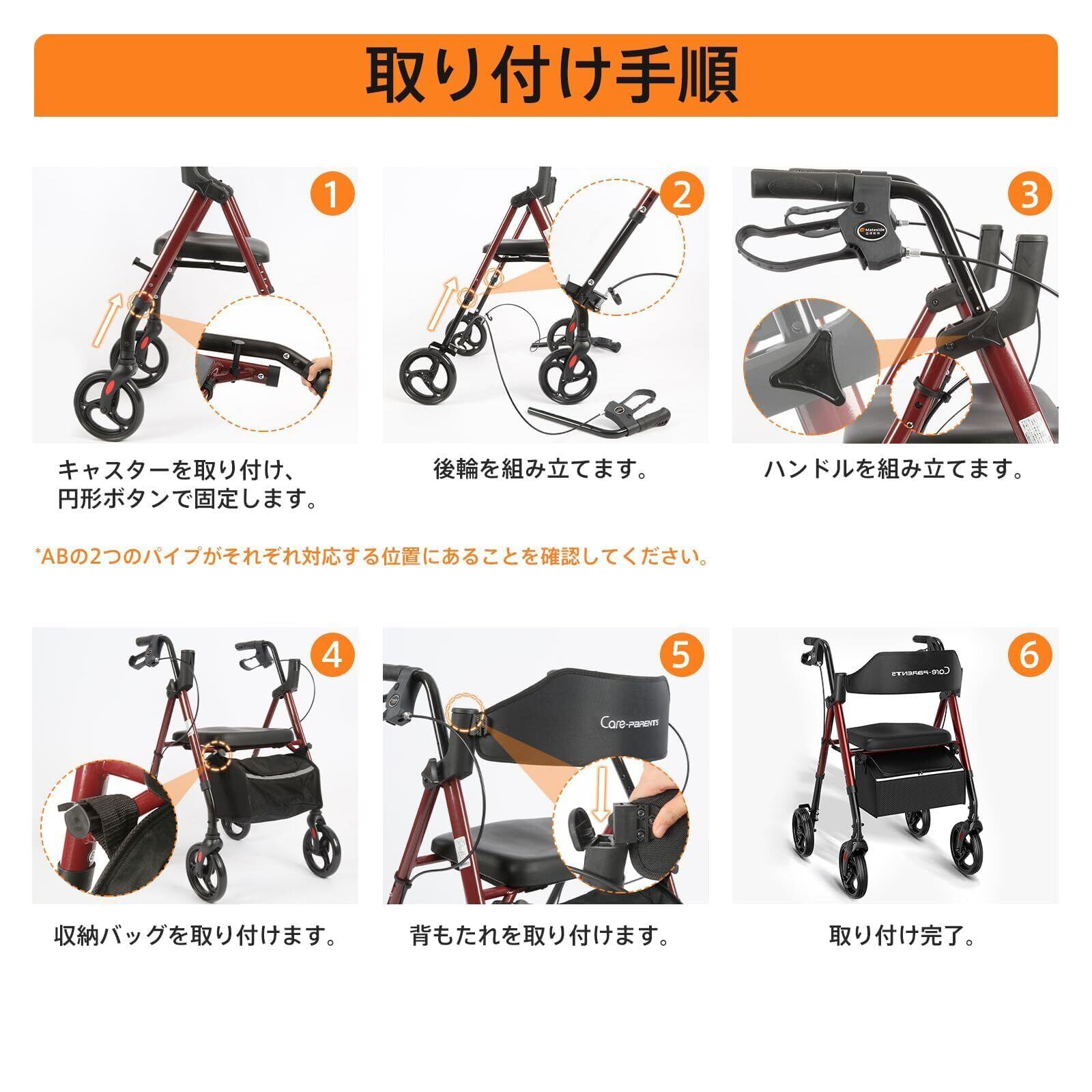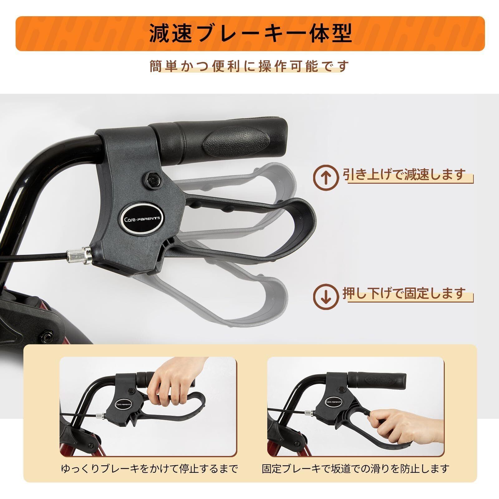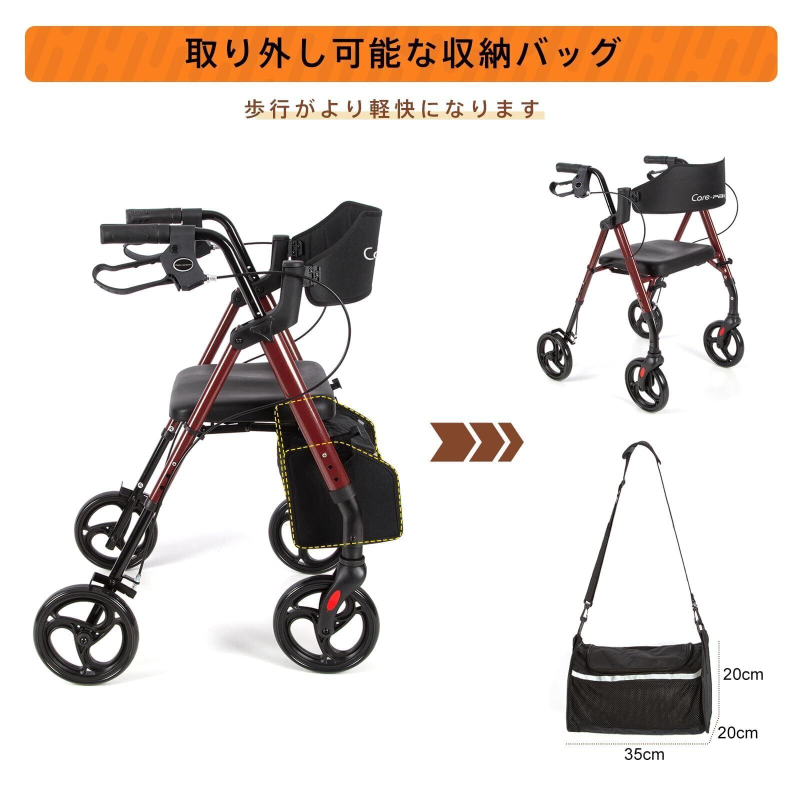 Care-Parents 歩行器 高齢者用 シルバーカー 四輪 1台3役 歩行車 アルミ製 軽量 8.3kg 折りたたみ コンパクト 高さ調節可能 ノーパンクタイヤ 収納バッグ付き 13.6L 介助ブレーキ 手押し車 介護用品 室内 屋外 耐荷重120kg 押し車(CP-Z21RD)