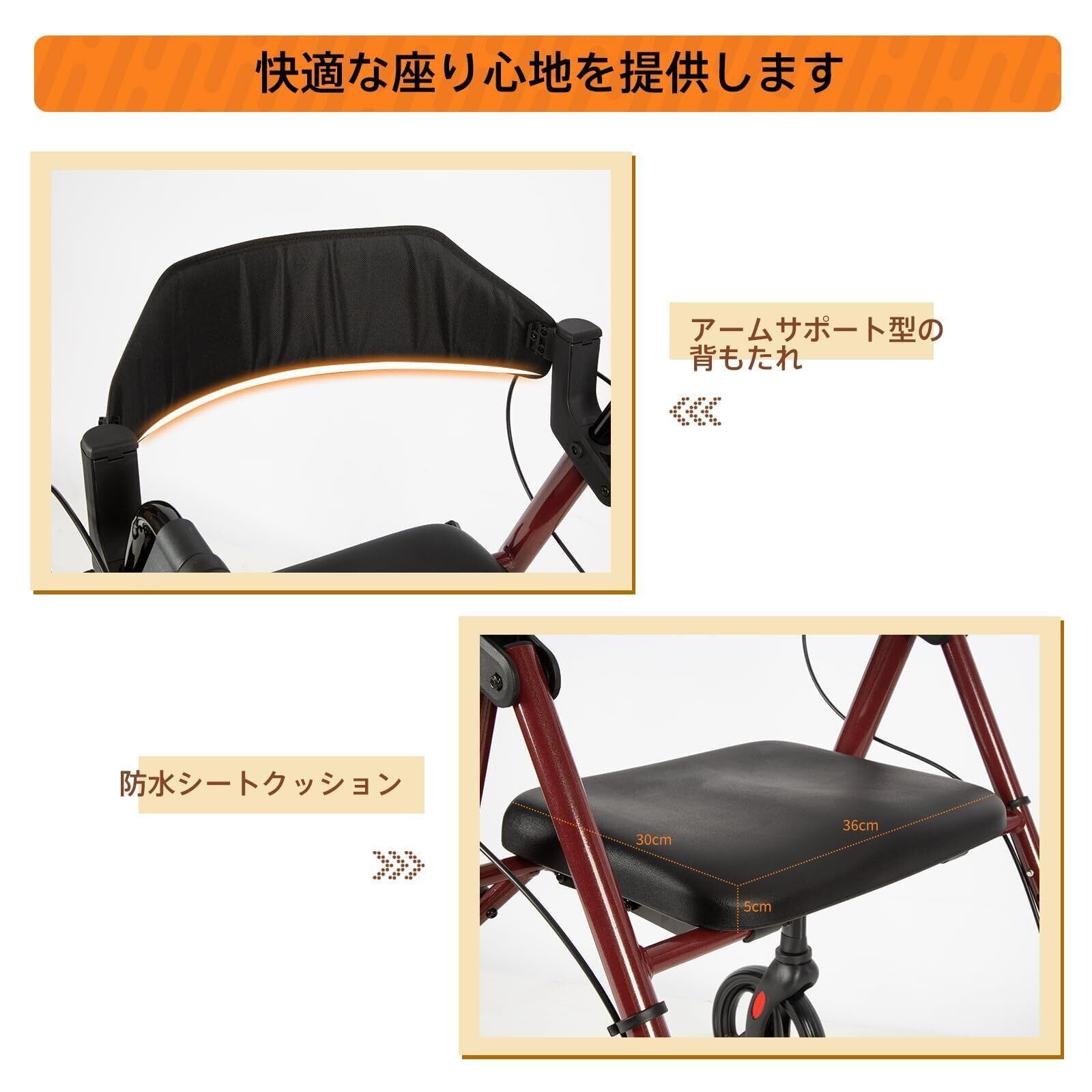 【人間工学に基づいた快適な座面と高さ調節】 座面には人間工学に基づいたデザインと防水設計を施しており、長時間座っても疲れにくく、お手入れも簡単です。ハンドルの高さは82~86cmの範囲で、使用者の体格に合わせて細かく調節可能。正しい姿勢で歩行できるため、腰や膝への負担を軽減します。目安身長:160~175 cm