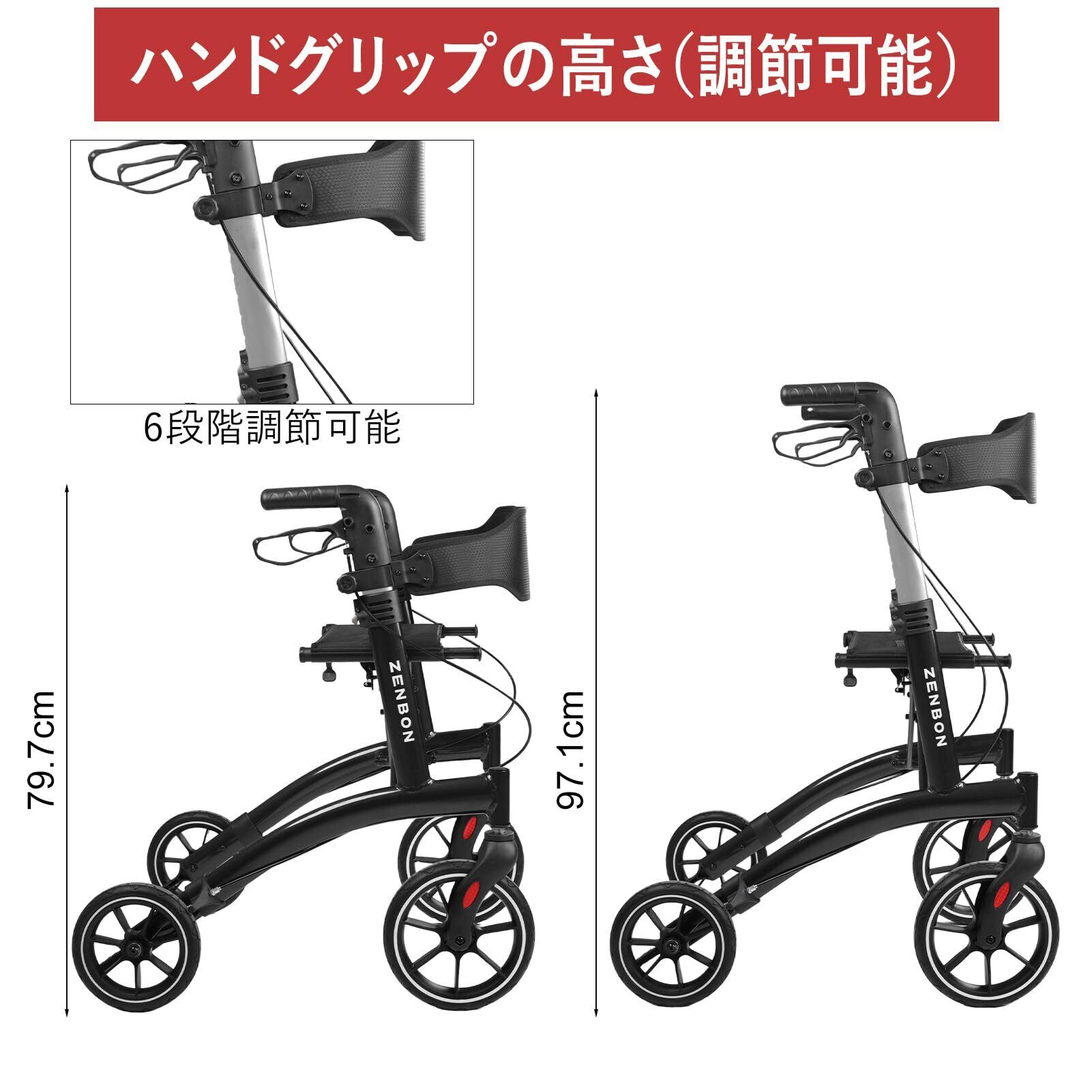 【新着商品】歩行器 シルバーカー 高齢者用 超軽量アルミ製 室内 屋外 座れる 耐荷重150kg 折り畳み式 高さ調節可 ブレーキロック機能付き 取り外せるバッグ付き 杖ホルダー付き 手押し車 老人 四輪歩行車 歩行補助 介護用