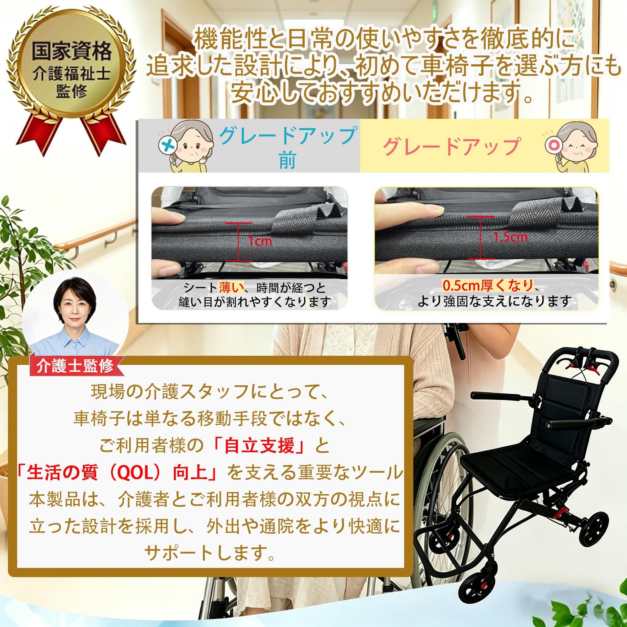 【車椅子該当する人】:術後のリハビリ、高齢者、成人、妊娠中の女性、若者や子どもたちが、足、無効、患者、落下や骨の問題に便利ではありません。そんな方に自信を持ってお勧めします。折りたたむことができるので、電車や新幹線、飛行機内にも入りやすいコンパクト仕様!