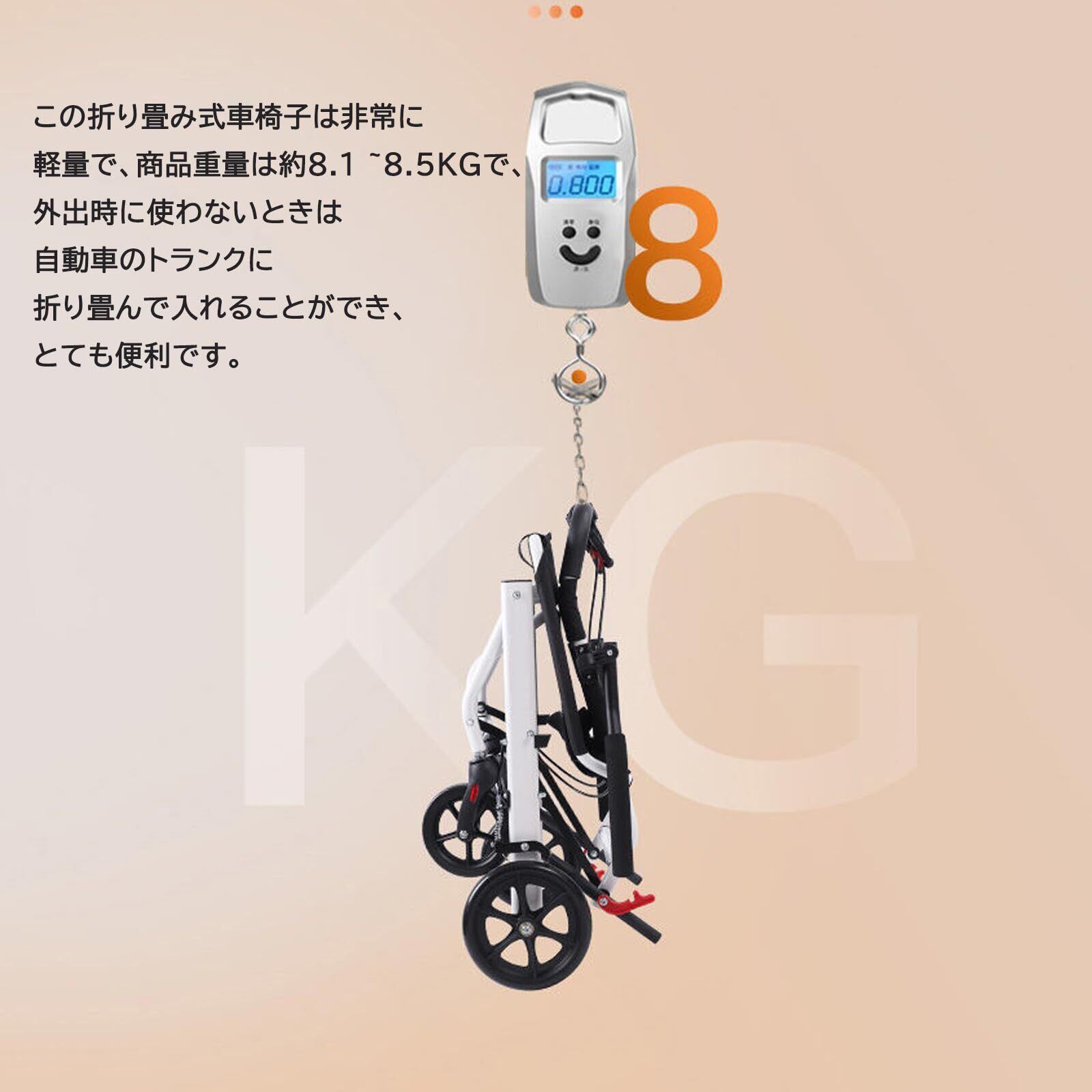 【超軽量&折りたたみ式】:重量8.5kgと、軽量ですので女性やお年寄りでも片手で持てます。軽いのに耐荷重は100kg、お子様から成人男性まで幅広くご利用できます!軽くてコンパクトに折り畳めるので、電車、新幹線や飛行機内でも乗り入れやすいコンパクト仕様です!