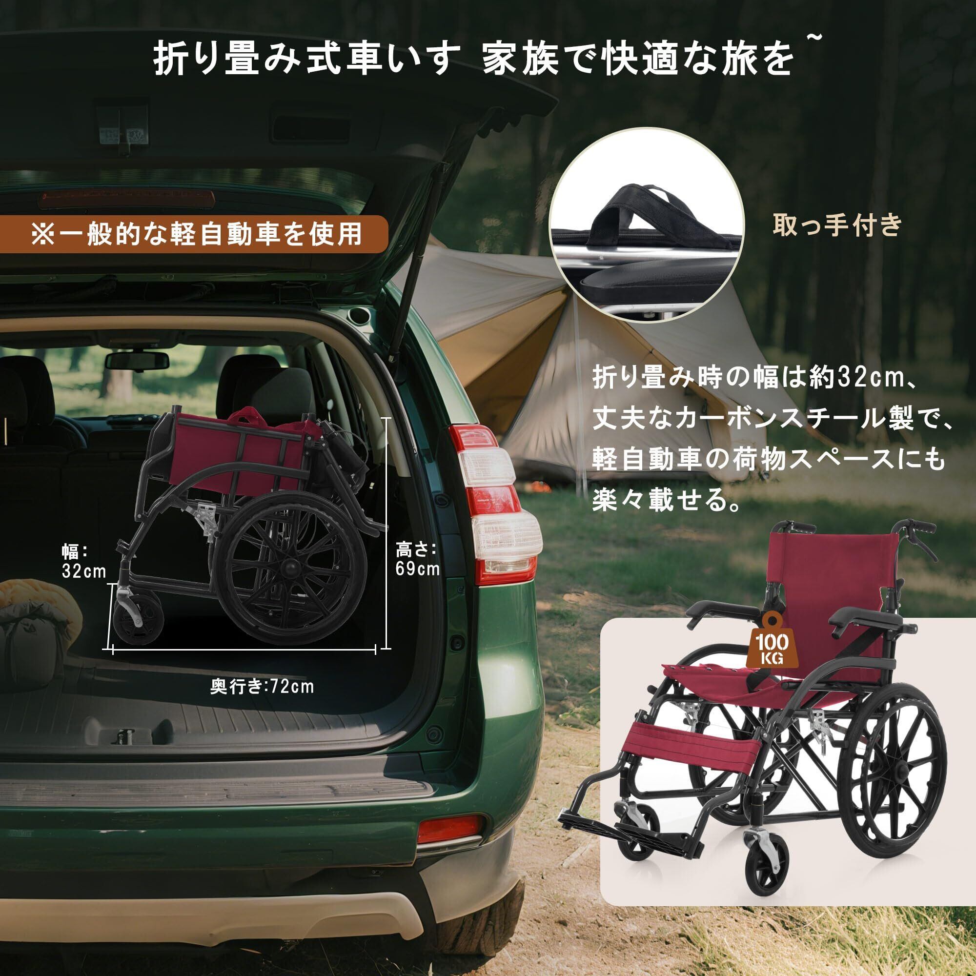 OSJ 車椅子 折畳み 自走式 自立できる ノーパンクタイヤ 折りたたみ 収納可能 超軽量 コンパクト 安全ベルトつき 背面ポケット 外出用 介護 福祉用具