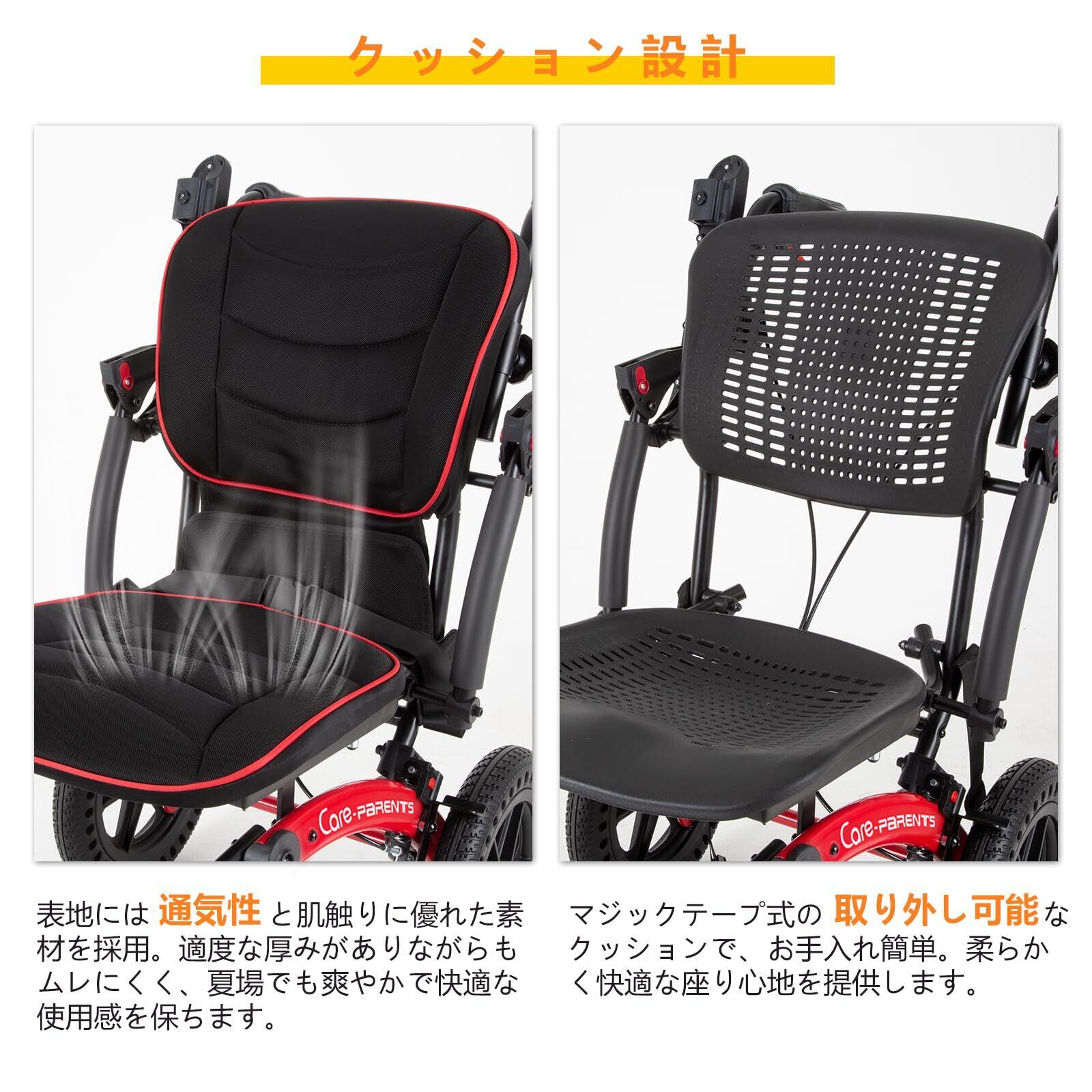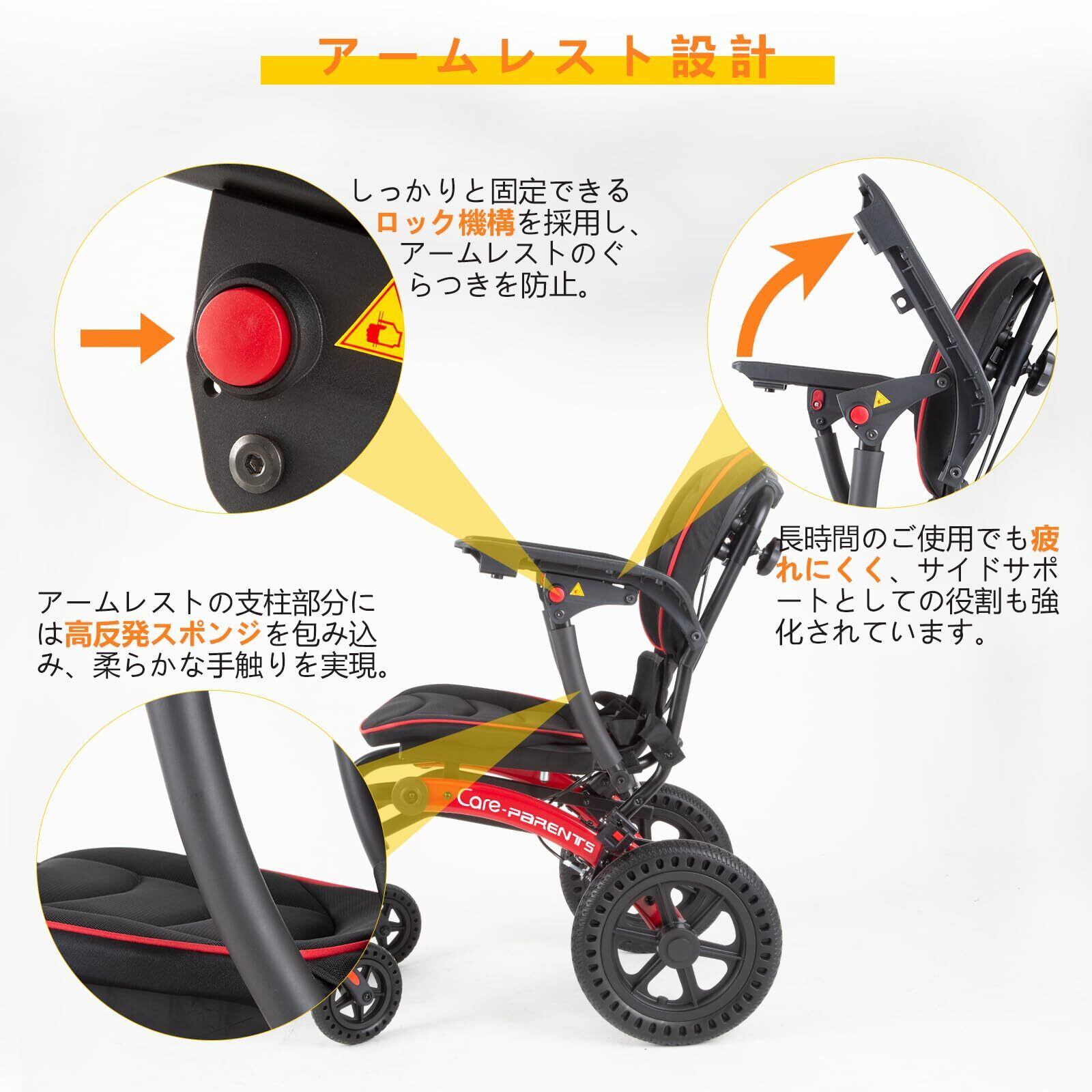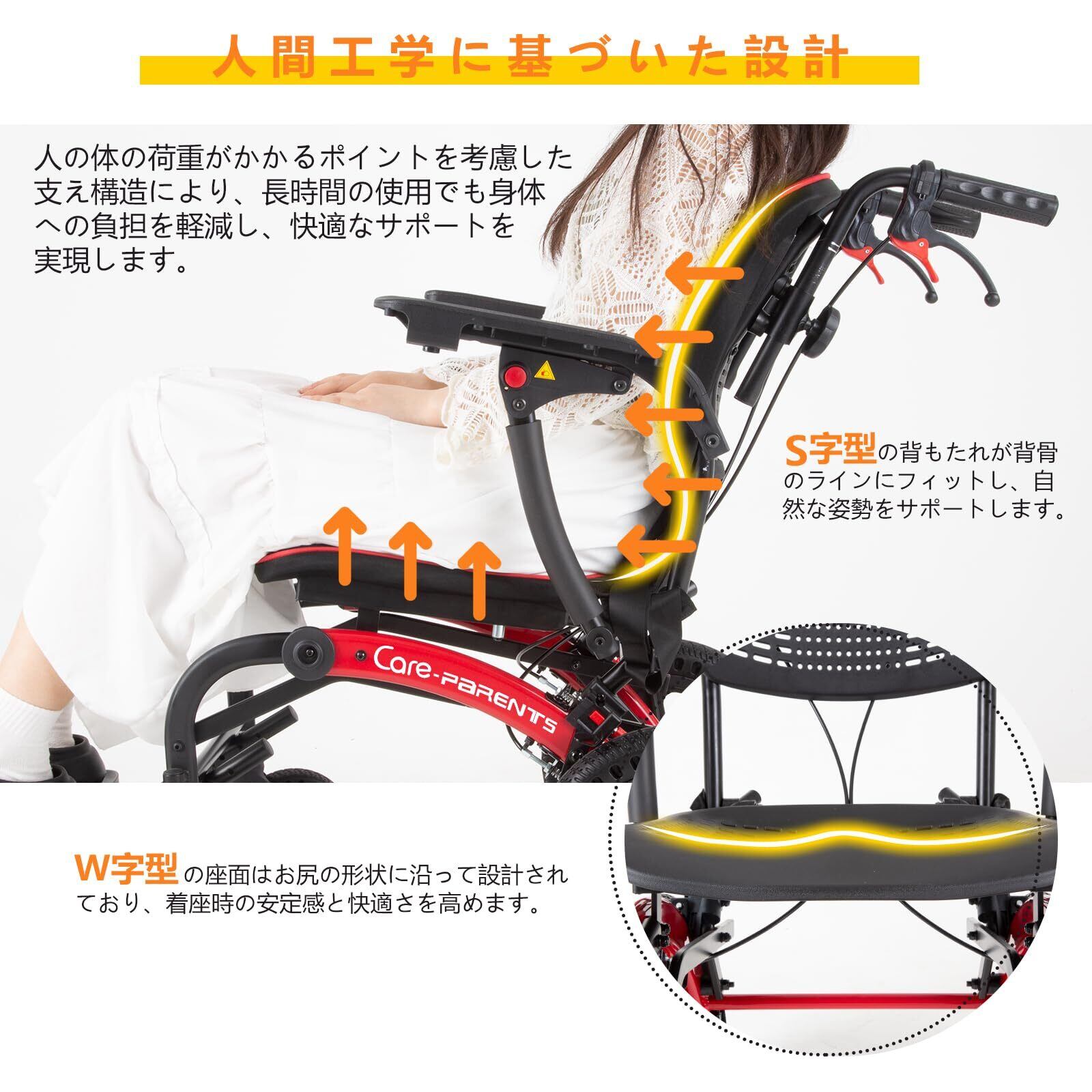 Care-Parents 車椅子 人間工学 軽量 折りたたみ コンパクト 介助用車いす ブレーキ調整可能 アルミ製 耐荷重120kg W型座面 S型背もたれ 可伸縮キャリハンドル付き 高齢者 室外 屋内 兼用(CP-RT09R)