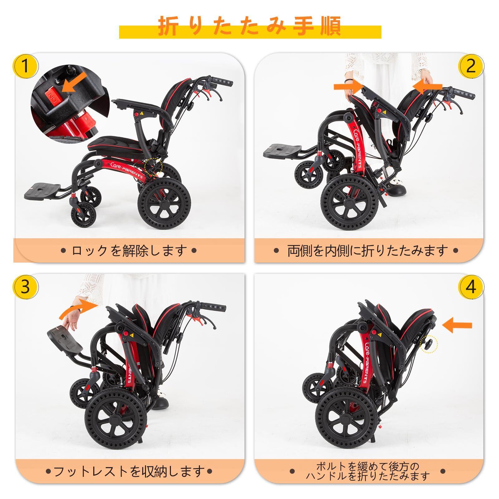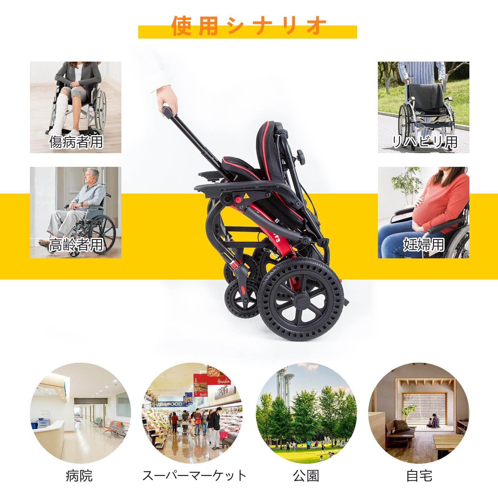 【軽量・折りたたみ式】アルミ製、軽量10.6kgで持ち運び簡単、折りたたみロックでワンタッチ開閉が可能。フットレストは3段階で長さ調節が可能。折りたたんでコンパクトに収納でき、個別のニーズに対応します。