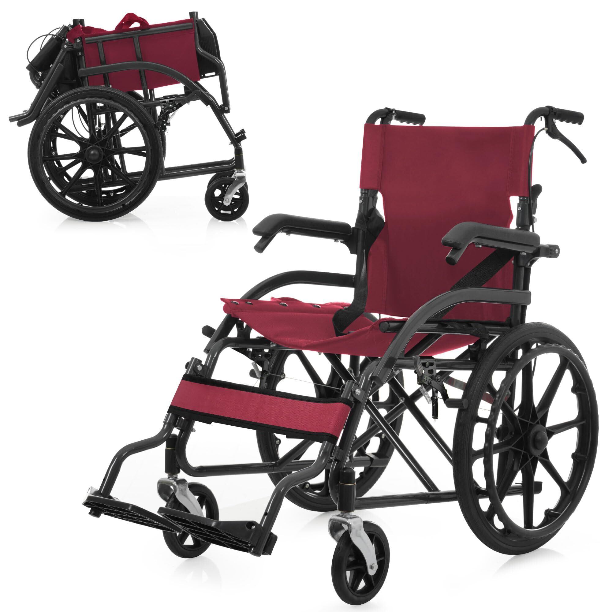 【新春セール】BTM車椅子 自走介助兼用 折り畳み 自立可能 介助ブレーキ付き コンパクト 脚2段階調節可能 持ち上げ式アームレスト付 介助用 キャスター付 収納ポケット付き コンパクト 介護用品 自立式 跳ね上げ式 福祉用具 耐荷重100kg 外出/旅行に適用(ブラック+レッド)