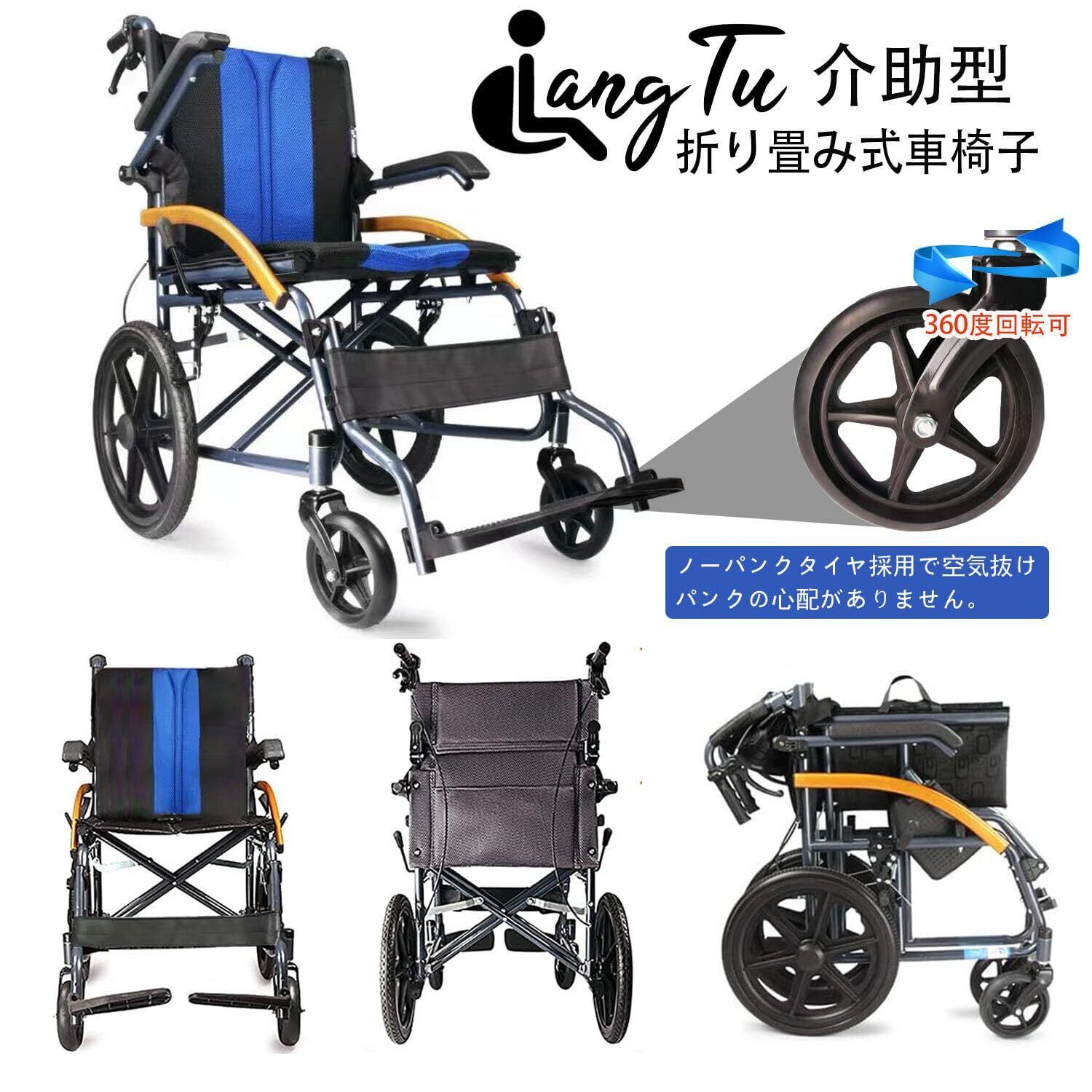 【2022最新】LangTu車椅子 折りたたみ 介助型車椅子 軽量車椅子 四輪歩行車 高耐荷重 100kg 持ち運び易い手押し車 背折れタイプ 透気性 介護用品 介助型簡易式車椅子 高齢者 妊婦向 け日本語の説明書付 き旅行用 外出用車イス