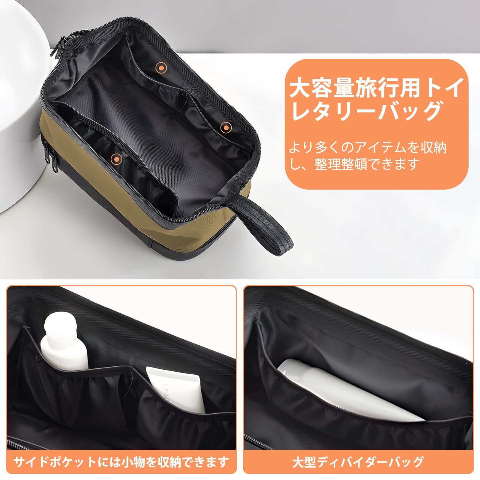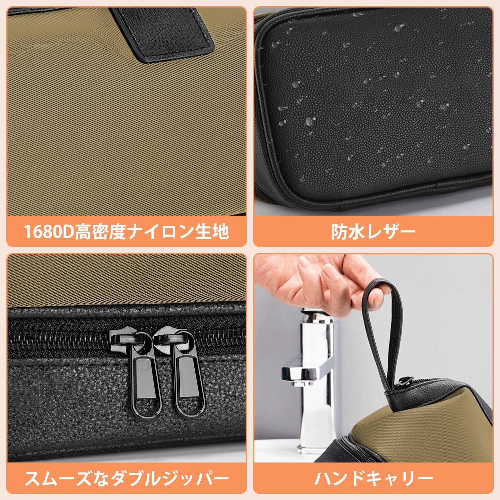【特価セール】Lermende 大容量 トラベルポーチ メンズ用 洗面用具 ポーチ ナイロンとPUレザー 化粧ポーチ 防水 乾湿分離 トイレタリーバッグ 多機能 旅行用ポーチ 夫や父への贈り物 (カーキ)