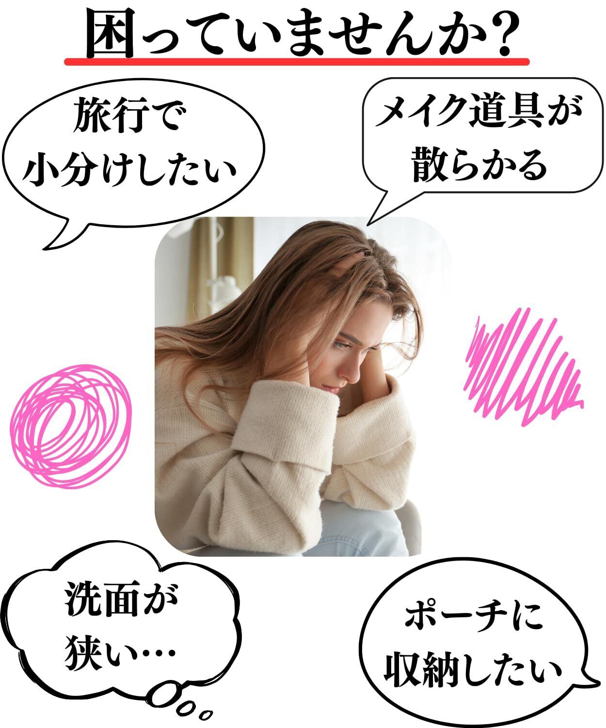 忙しい朝ももう大丈夫!この多機能メイクポーチは、ズボラでも散らかり知らずな使い勝手を実現する画期的な収納システムです。取り外し可能な仕切りとパーツを備え、持ち運びもラクラク。防水機能が付いているため、洗面用具をはじめとするコスメや日用品を水濡れの心配なく整理できます。旅行の際は試供品をいれたり小物を入れるのに最適です。歯磨きセットやメイクブラシなどに最適に持ち運びにも。