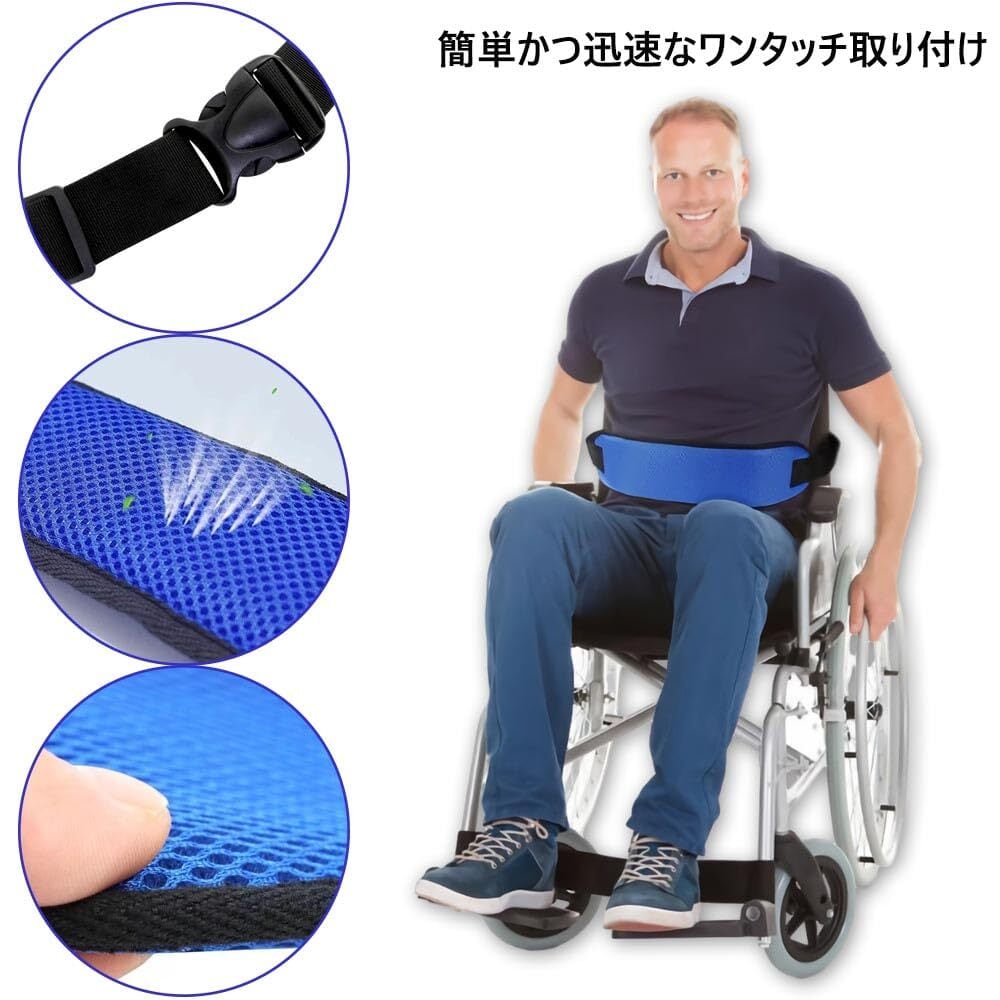 滑り止めシートベルト 車椅子 ベルト 固定ベルト 保護ベルト 安全ベルト転落 ずり落ち 姿勢 保持 防止 ワンタッチ 装着 介護用車イス 滑り 防止老人ケア (ブルー)