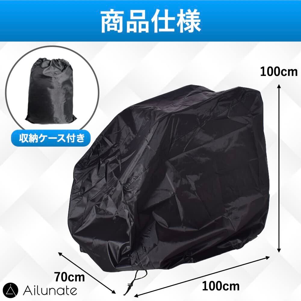 Ailunate 車椅子カバー 車いすカバー 車椅子用 屋外 防水 保護 保管 屋内 日除け 日よけ 撥水 収納 裾絞り 収納袋付き (ブラック, 100x70x100cm)