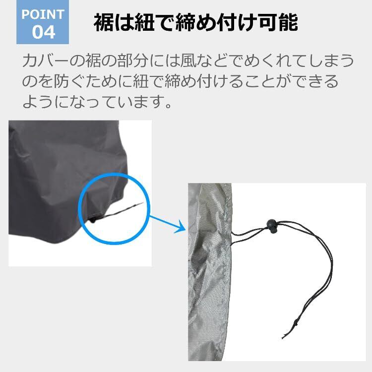 ③カバーの裾の部分には風などでめくれてしまうのを防ぐために紐で締め付ける ことができるようになっています。