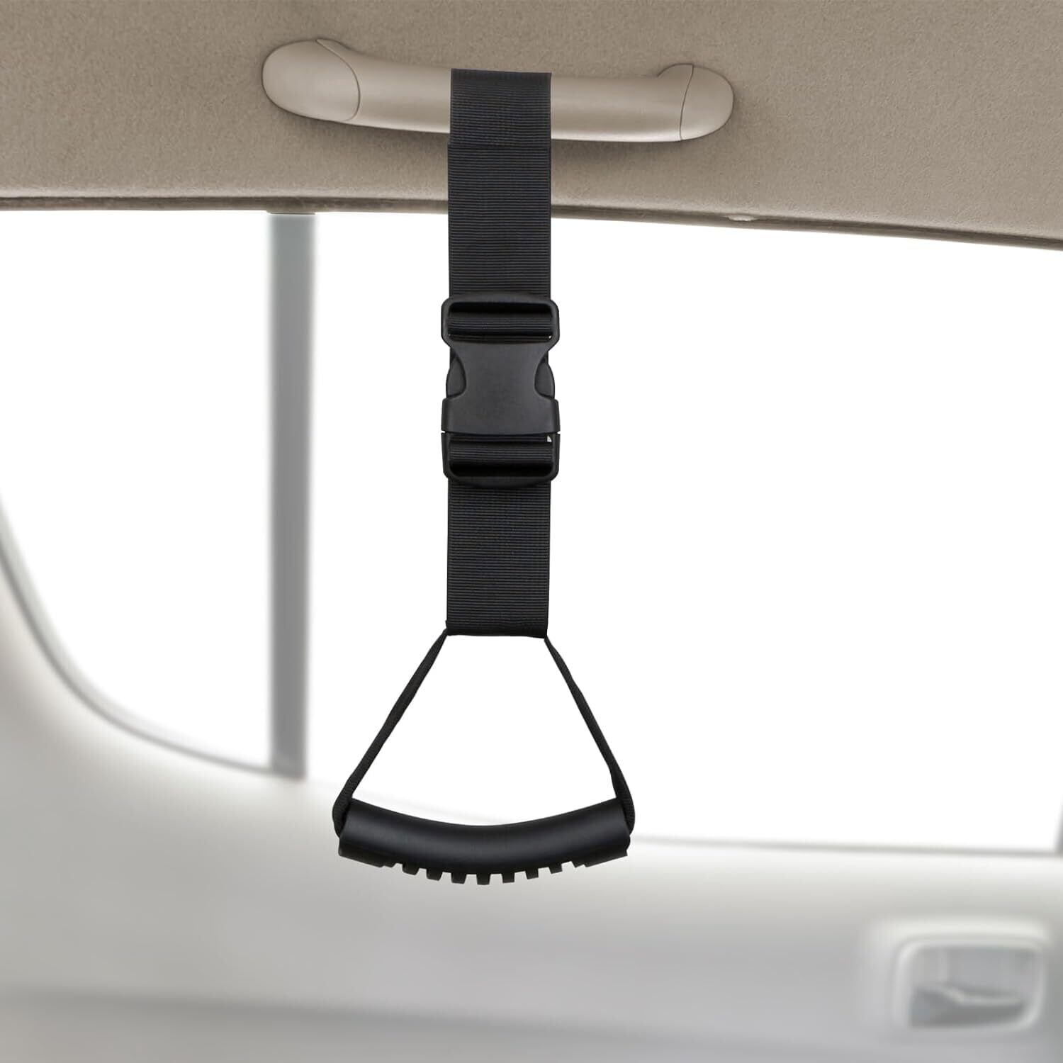 SENUN 車用持ち手 乗り降り 手すり (手のひらにフィット!丈夫なストラップタイプ) 車 つり革車 サポート お年寄り ドア 後部座席 吊り つりさげ式 乗り降り グリップ 持ち手 ブラック