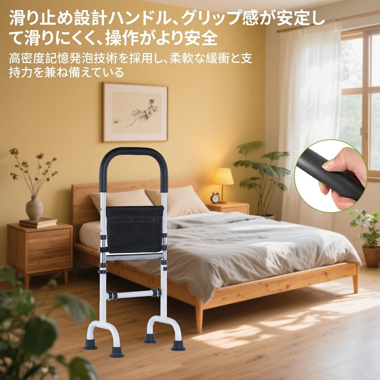 【滑り止めフットパッド、より安全な歩行補助】立ち上がり補助器具底部には滑り止めフランジフットパッドが装備されており、地面との摩擦を効果的に高め、滑りを防止します。滑らかなタイルの床でも、柔らかいカーペットでも、安定したサポートを提供し、一歩一歩が自信を持って穏やかになります。