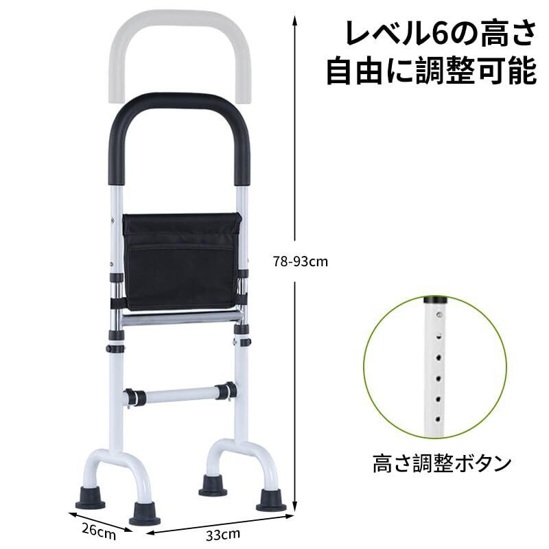 【人気商品】立ち上がり補助器具 トイレてすり 室内 手すり つかまり立ち 転倒防止 6段階手す り ポケット付き 玄関 階段