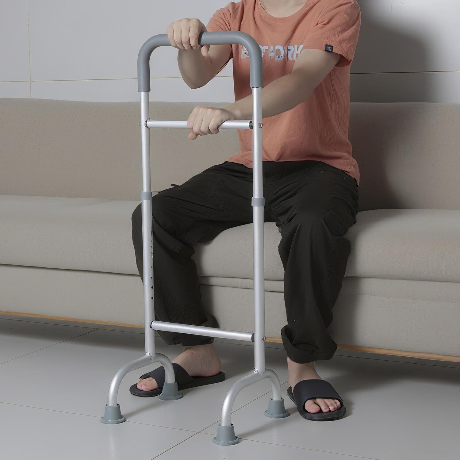 【新春セール】介護用手すり 立ち上がり補助器具 トイレてすり 高さ調整 滑り止め付き 床 補助 つかまり立ち 転倒防止 玄関 室内 屋内 屋外 グレー 銀