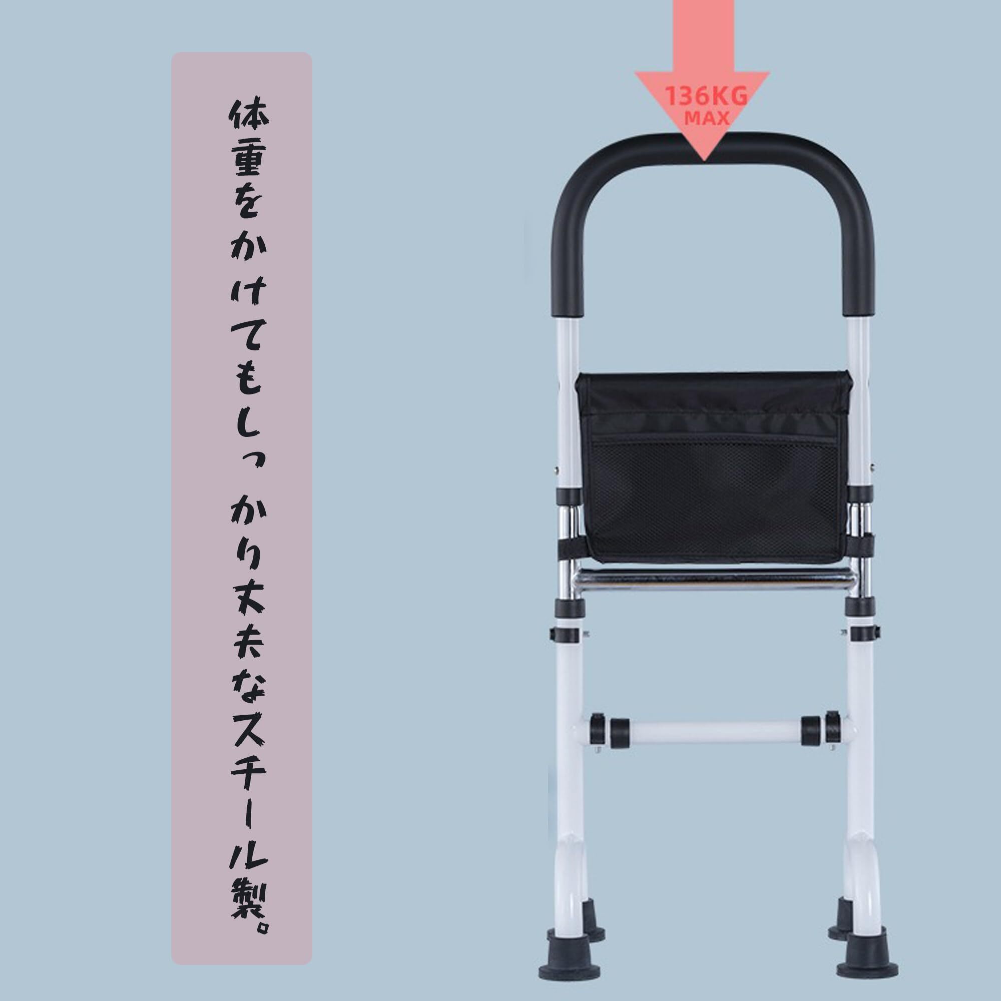 【在庫処分】トイレてすり 介護用 立ち上がり補助器具 床 補助 つかまり立ち 6段階 室内手すり 転倒防止 置き手すり ポケット付きホワイト