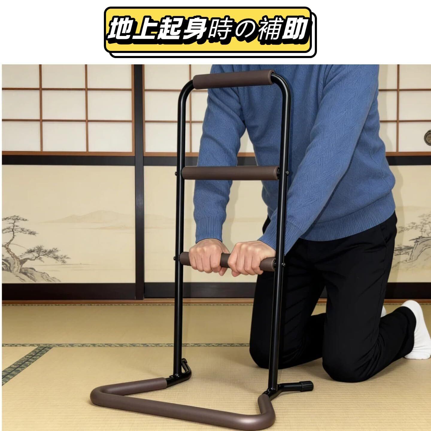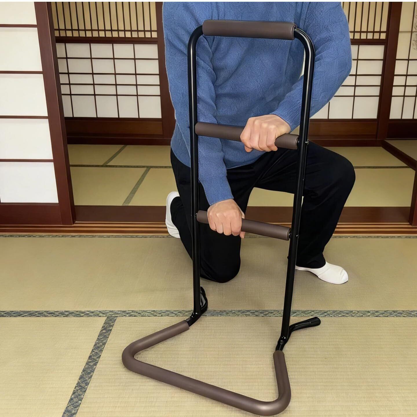 室内専用 場所を選ばず移動自在 立ち上がり補助器具 室内向け設計で軽量コンパクト、一人でも簡単に移動し、トイレ・ベッド・ソファ周りに自由に設置。