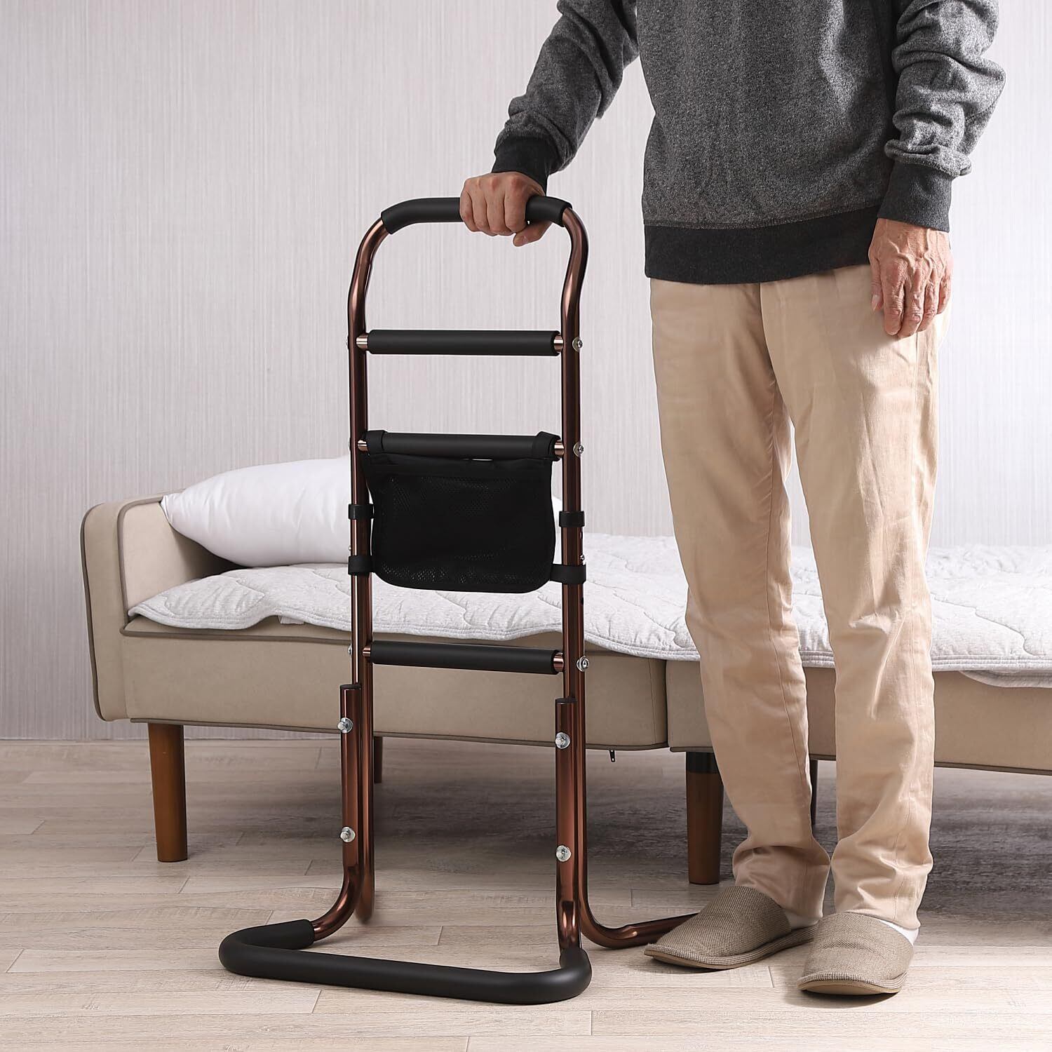 【在庫セール】立ち上がり 補助 手すり 介護用品 置き型 高さ調節4段階 超軽量1.39kg 持ち運び 転倒防止 リハビリ 滑り止め 玄関 トイレ ベッド 椅子 サポート 耐荷重136kg 日本語説明書/動画付