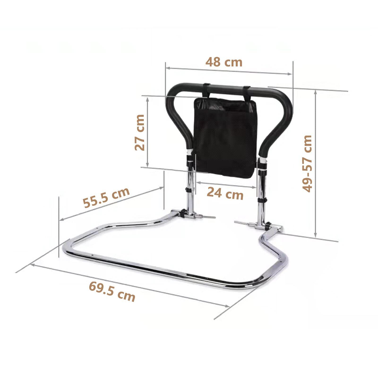 ️安全で安心:本製品は1.2mm厚さの高強度炭素鋼、69.5*55cm大きい面積のベース、及び強化ボルトを使い、二重があり、手すりの安定性と耐用性が確保され、妊娠者、お年寄り、体の不自由な人、手術を受けた人がみんな安心に使える。ベッドに入ったり、ベッドから出たりする時に助力して、転倒を防止する。