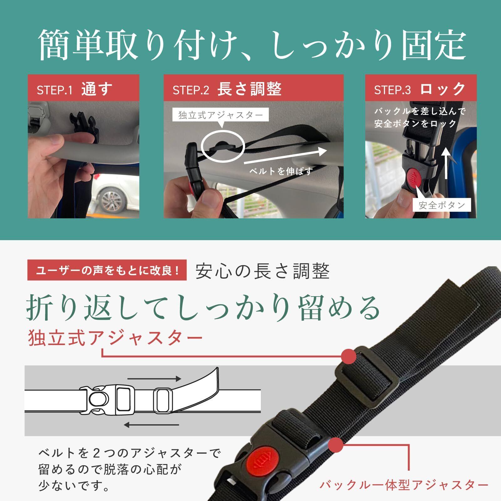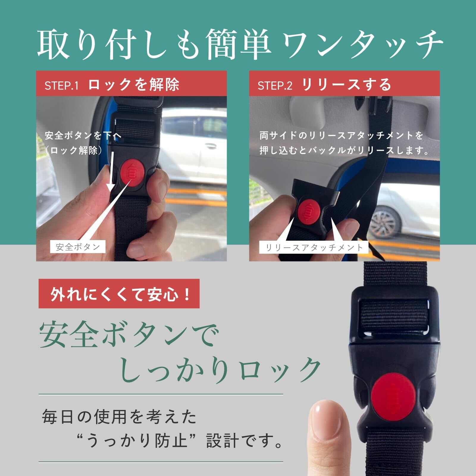 【長さ調整可能】アジャスターで長さを自由に調整可能で、座席の高さやユーザーの体格に合わせて最適なポジションに設定できます。必要なときにだけ装着して使わないときには簡単に取り外せるため、複数の車で併用したり外出先でも使用していただけます。軽量・コンパクトなので旅行やお出かけにも携帯していただけます。