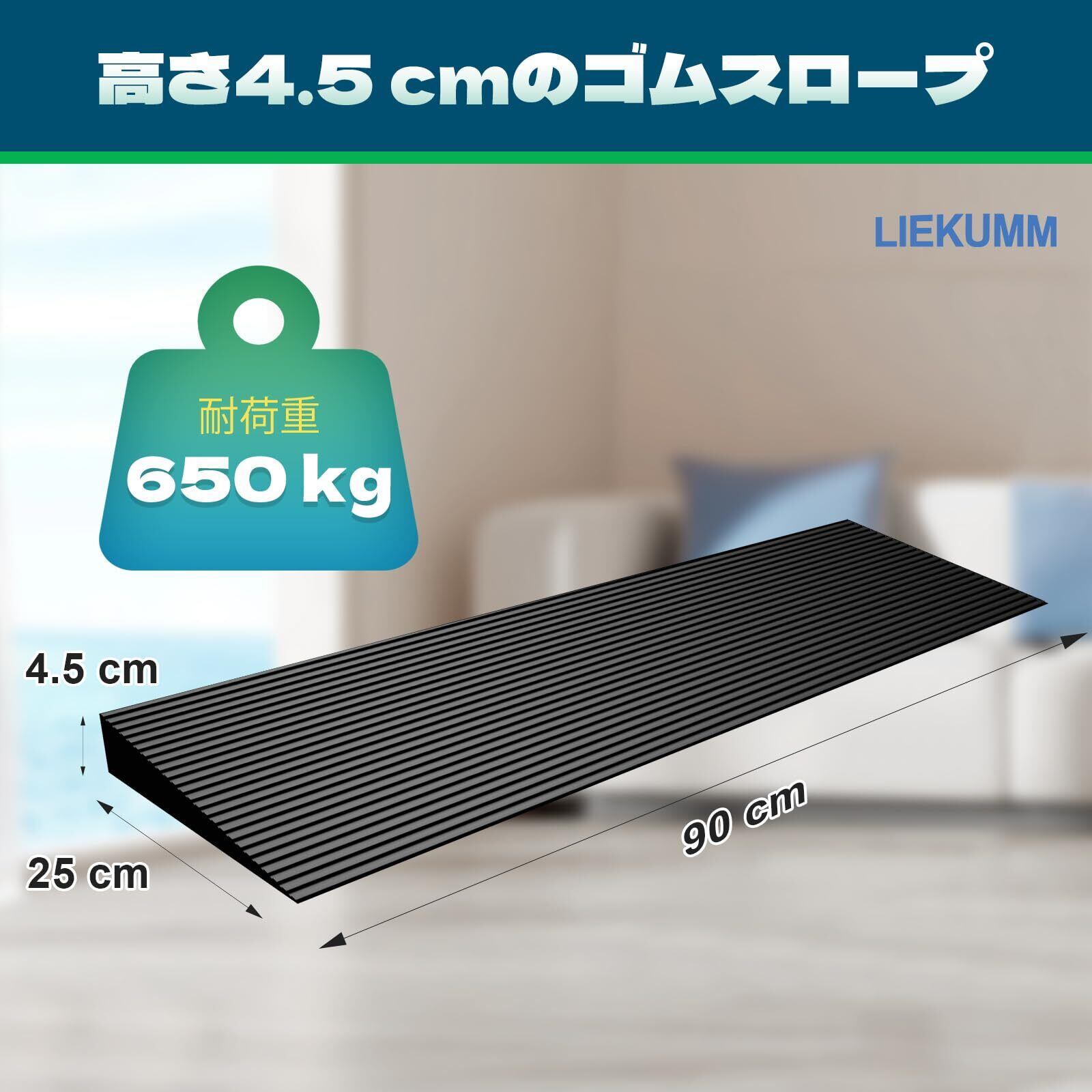【2022最新】LIEKUMM 段差スロープ 高さ4.5cm 幅90cm 耐荷重650㎏ 段差解消スロープ 滑り止め 裁断可能 静音 高耐久性 室内外 玄関 敷居 浴室 ガレージ 倉庫 道路 病院 車椅子 ロボット掃除機 ベビーカー 台車 高齢者 障害者