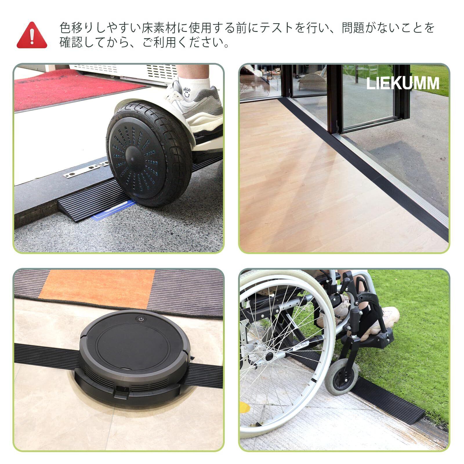 LIEKUMM 段差スロープ 高さ1.5cm 幅90cm ゴム 耐荷重650㎏ 段差解消スロープ 滑り止め 裁断可能 静音 高耐久性 室内外 玄関 敷居 浴室 ガレージ 倉庫 道路 病院 車椅子 ロボット掃除機 ベビーカー 台車 高齢者 障害者