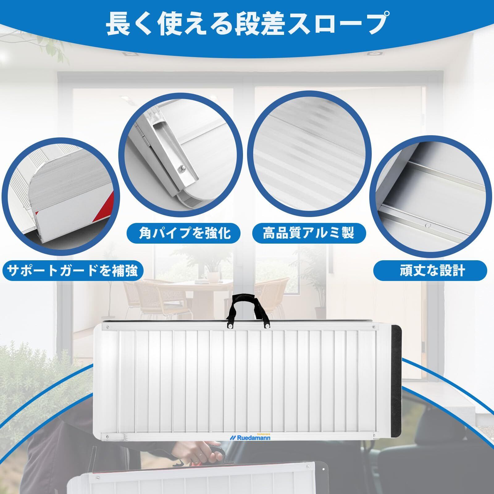 【在庫処分】Ruedamann アルミスロープ 長さ188cm*幅85cm 耐荷重400kg アルミ 折り畳み式スロープ 車椅子 幅広い 段差解消 介護用 電動車椅子 カーブ 階段 玄関適用