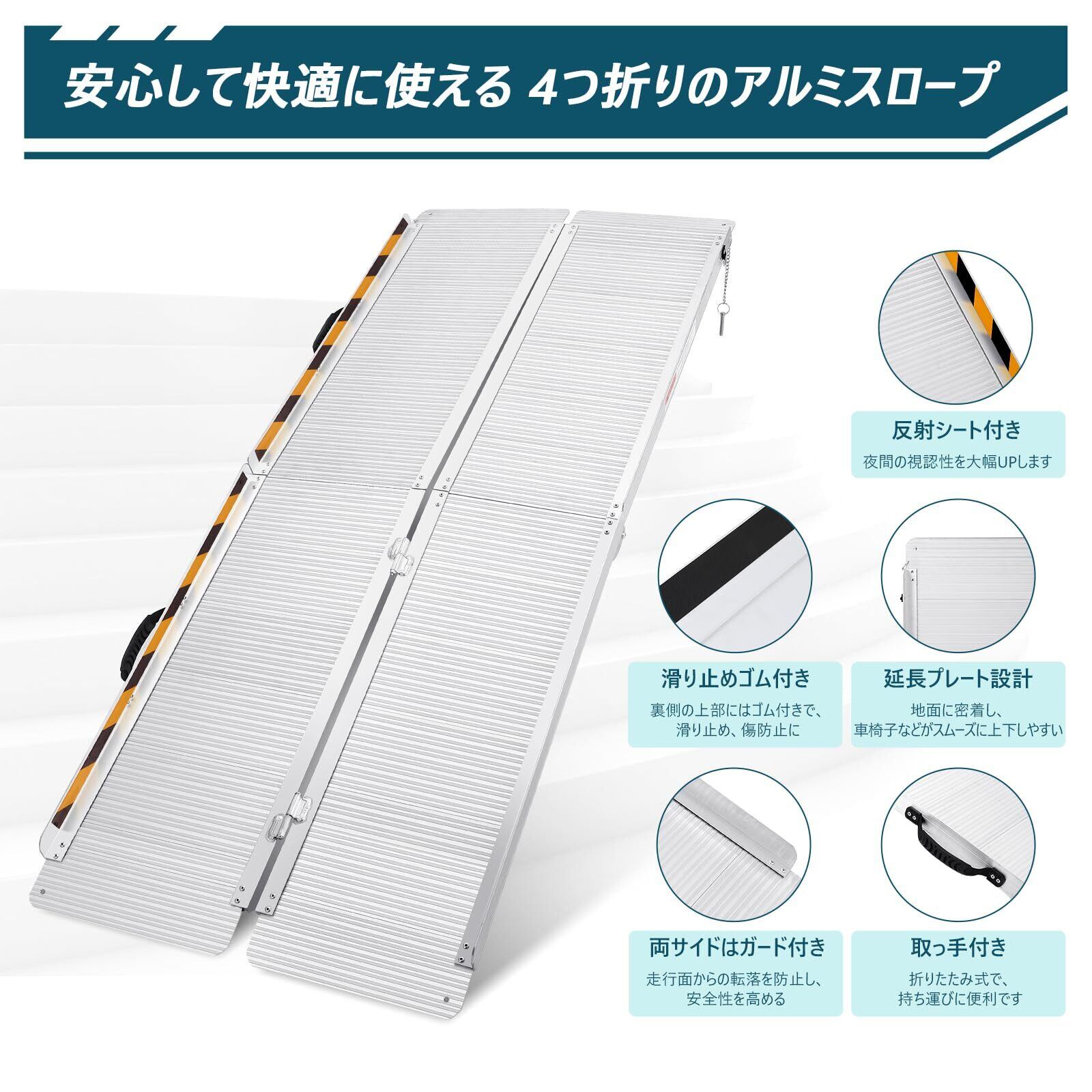 Euker(ユーカー) アルミ 車椅子 スロープ 段差スロープ 折りたたみ 四つ折り 段差解消 長さ152Cm*幅74Cm 介護用 滑り止め 持ち運び 玄関 階段 室内外