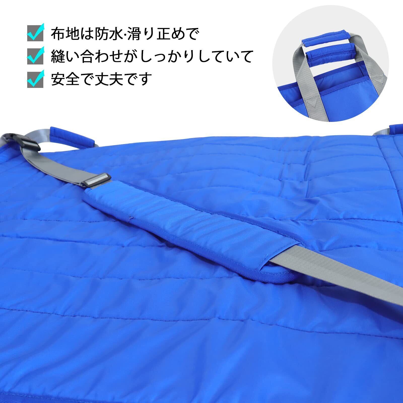 【2022最新】移乗シート 患者/高齢者移動サポート 4ハンドル付き担架 一人用/二人用介護リフト 負担減る 105*72cm 持ち運び可能介護シート(ブルー)