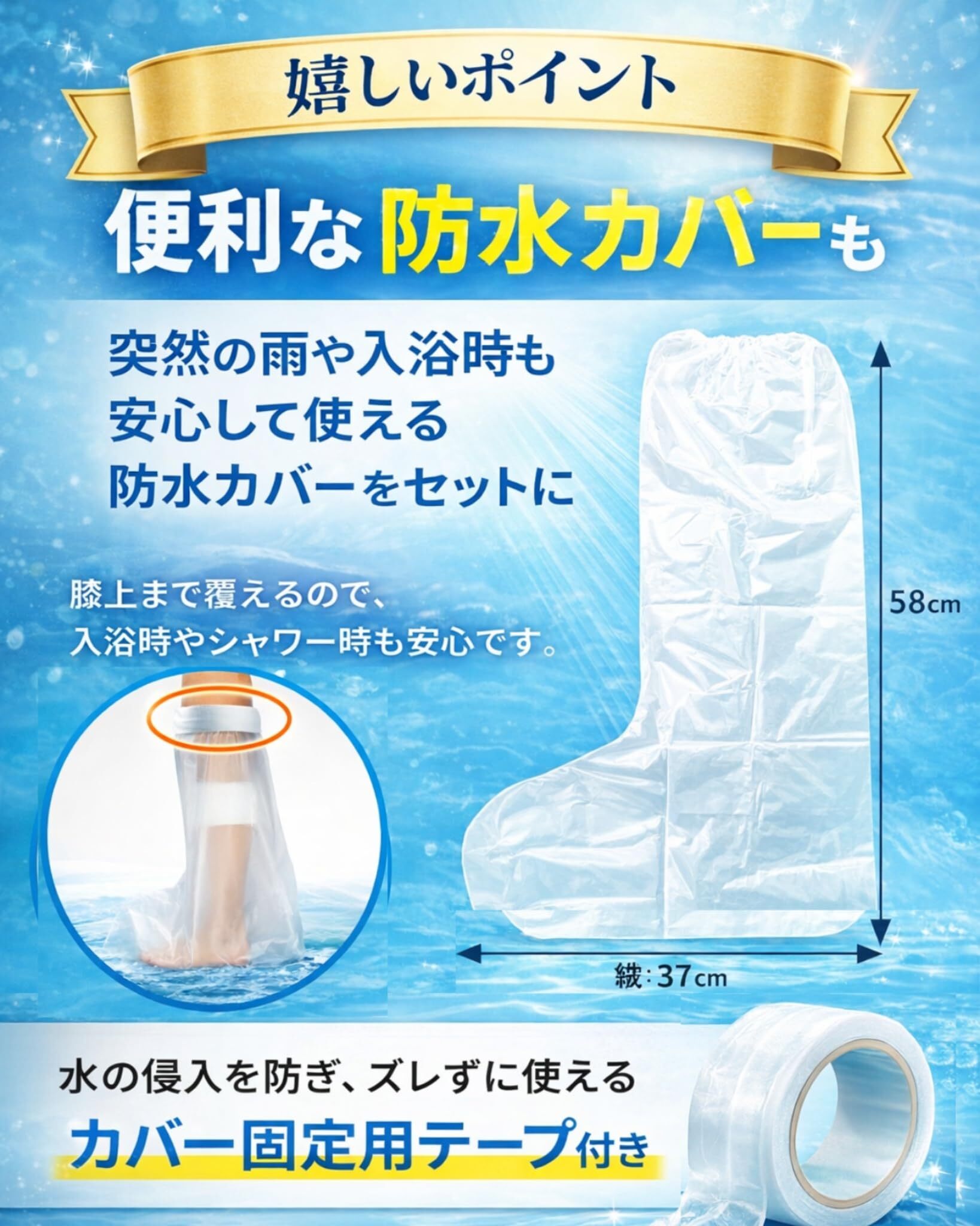 【通気性と着脱のしやすさを両立】 開口部が大きく開くデザインで、ギプスをしたままでも着脱が簡単。通気性にも優れ、蒸れにくく快適です。季節を問わず快適にご使用いただけます。入浴時に便利な入浴用カバー付き。