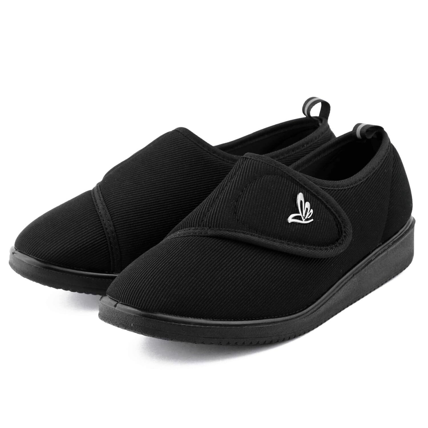 外でのウォーキングや普段履きは勿論ですが、施設内での室内履きや、施設の送迎、移動、入院時の室内履きと幅広くお使いいただけます。足の甲が開くことで無理なく履かせられるという点も好評です。