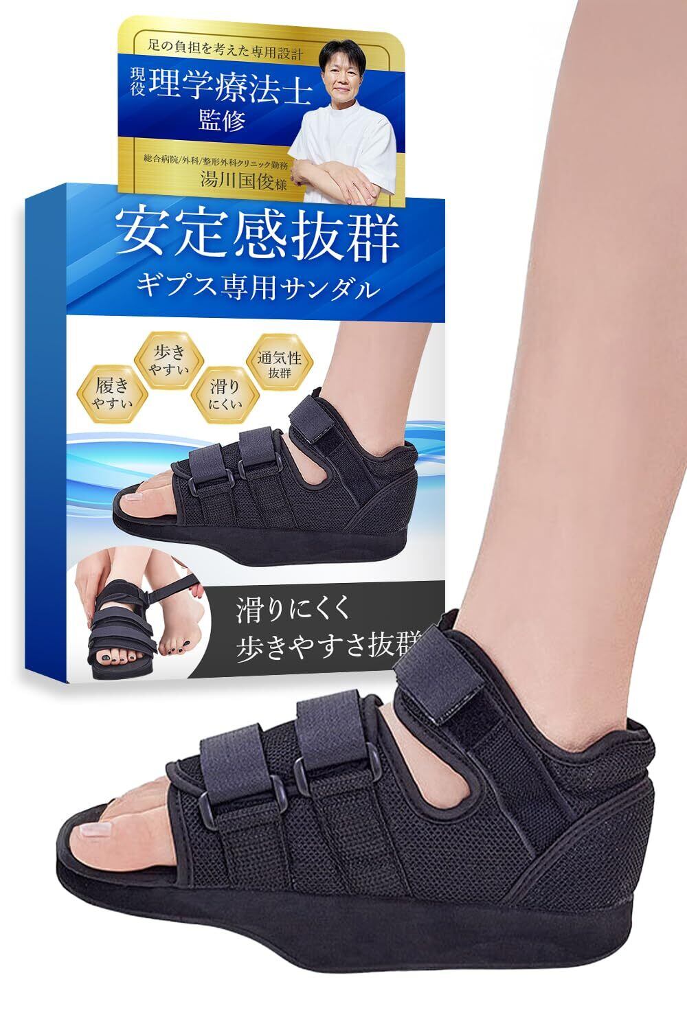 techno life ギプスシューズ 骨折用 サンダル 履きやすい 滑り止め 軽量 調節可能 左右兼用 リハビリ 病院 介護用 クッション性 衝撃吸収 つま先保護 足首固定 甲高対応 ゆったり設計 男女兼用 室内 屋外 歩行サポート ブラック Mサイズ