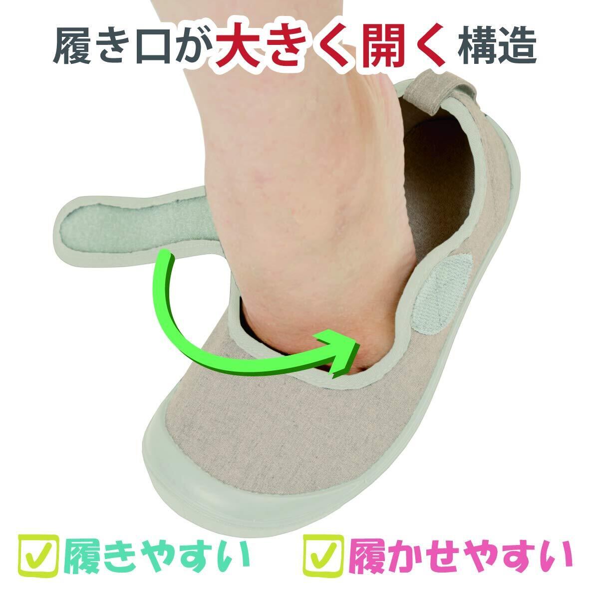 竹虎 入院サポートシューズ (ベージュ/グレー/ブラウン) 22.0cm~28.0cm 着脱 ベルト 歩行 サポート 素足 入院 リハビリ履きやすい 履かせやすい