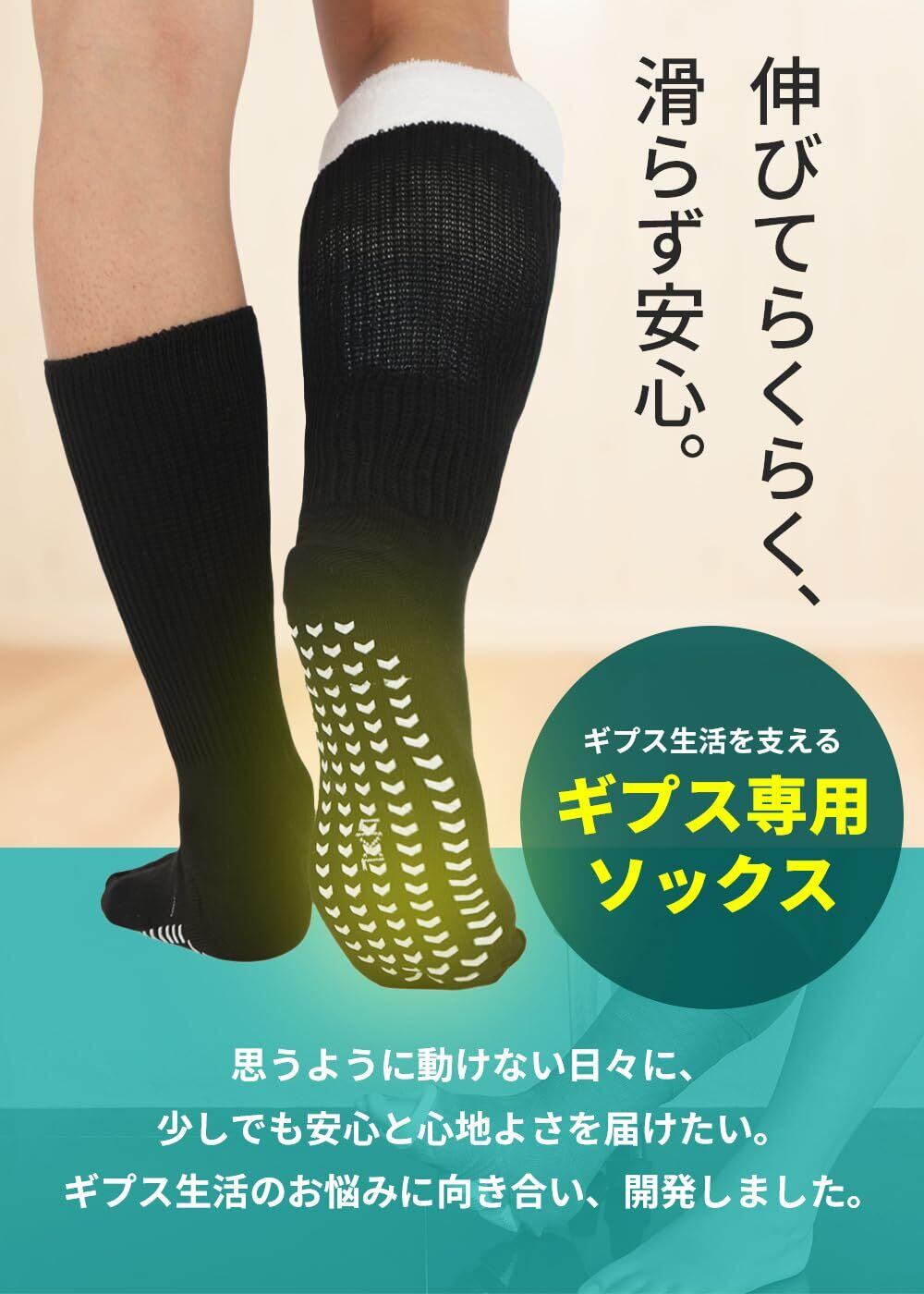 ギプスの上から履ける 転倒防止 ゆったり ソックス 介護 靴下 締め付けない 包帯 高齢者 大きい ギプスカバー 簡単着脱 足裏グリップ式