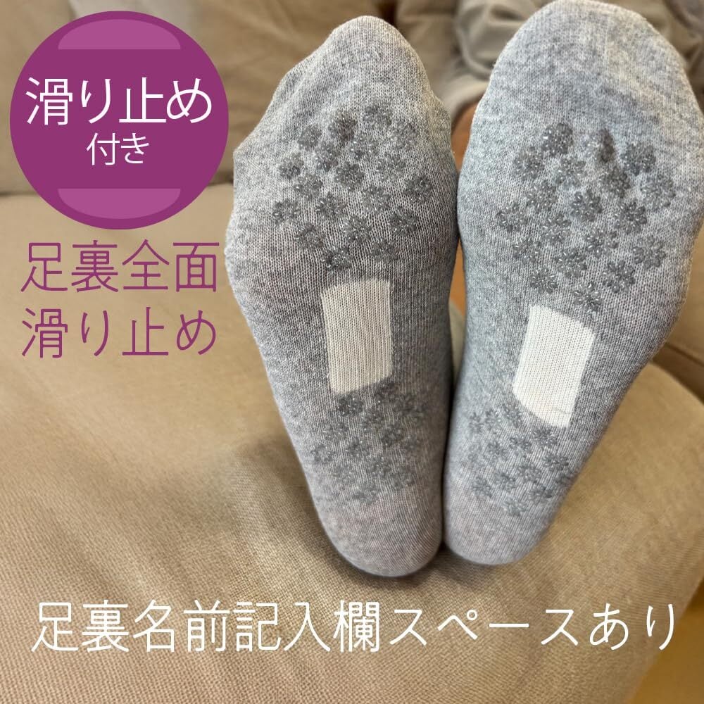 足底滑り止め付き:フローリングでの転倒を予防 クチゴムゆったり編み:ゆったりしているので跡がつきにくい。