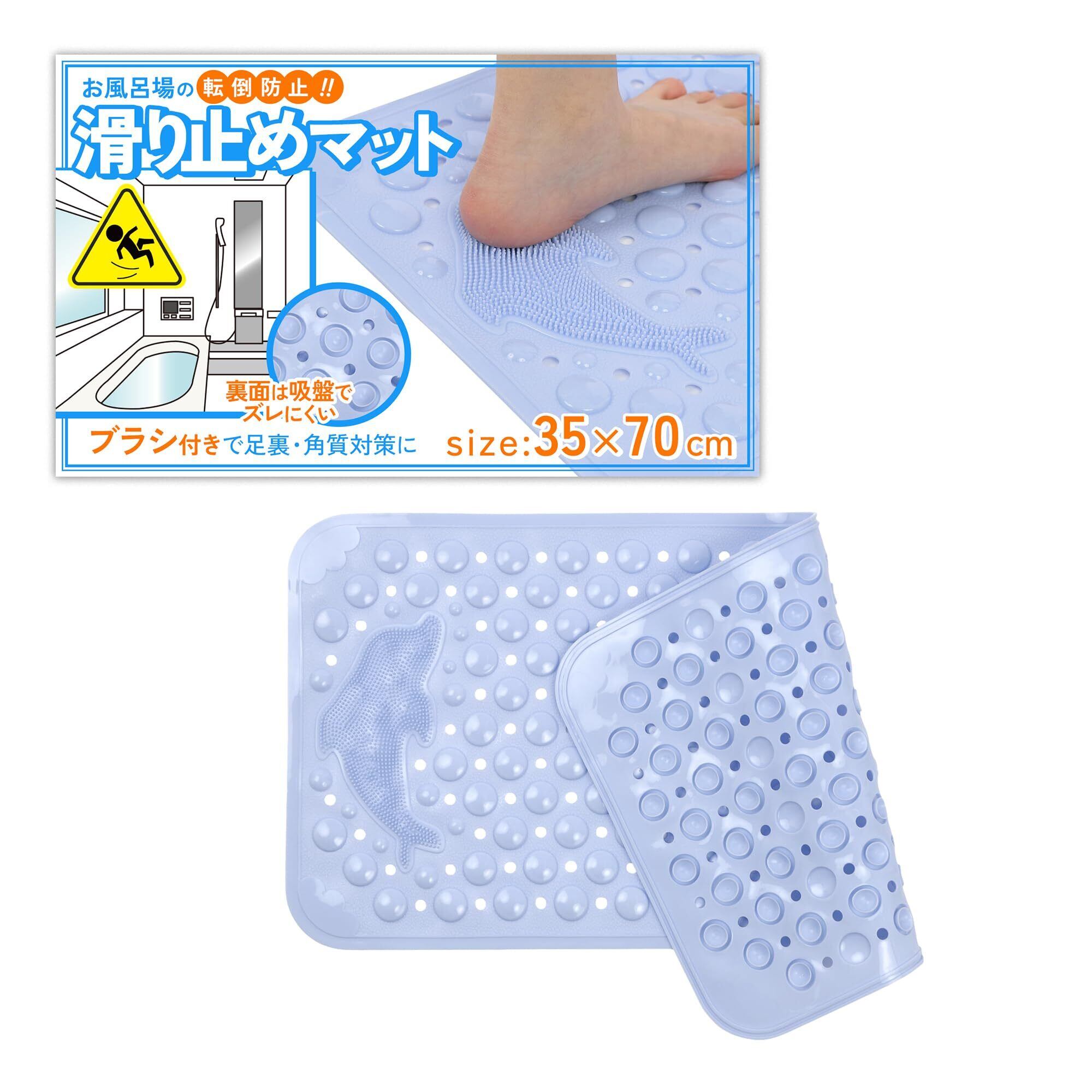 お風呂 浴槽 滑り止めマット 吸盤付き ズレない 介護 浴室 シート 足裏 ブラシ 臭い 角質対策 防カビ仕様 (ブルー, 長さ70cm x 幅35cm)