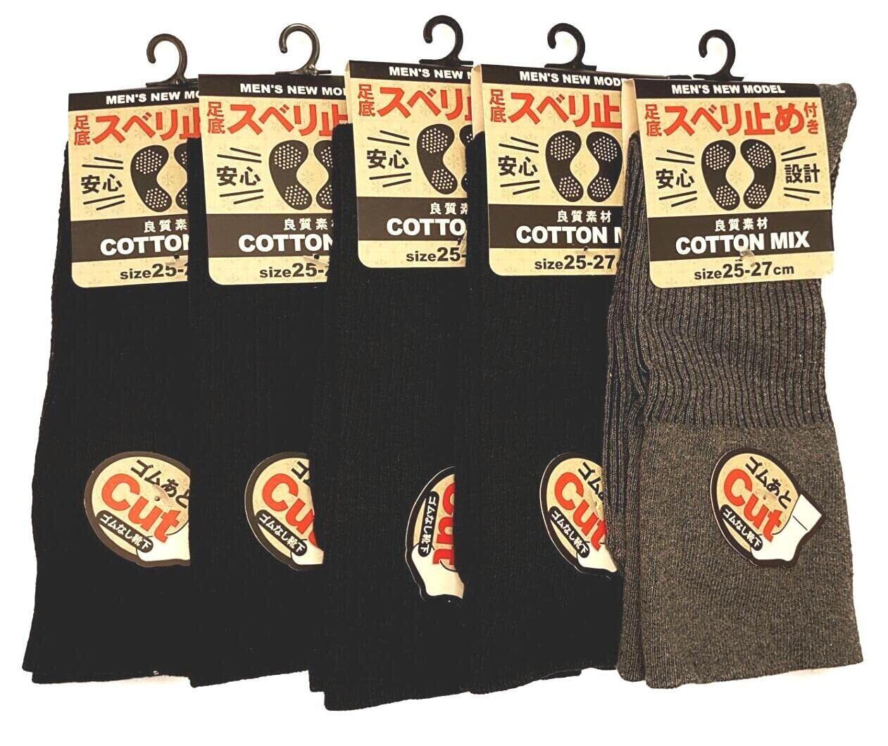 【数量限定】靴下専科 メンズ 靴下 介護用 ソックス 足裏 すべり止め付き ゆったり ゴム無し 5足セット
