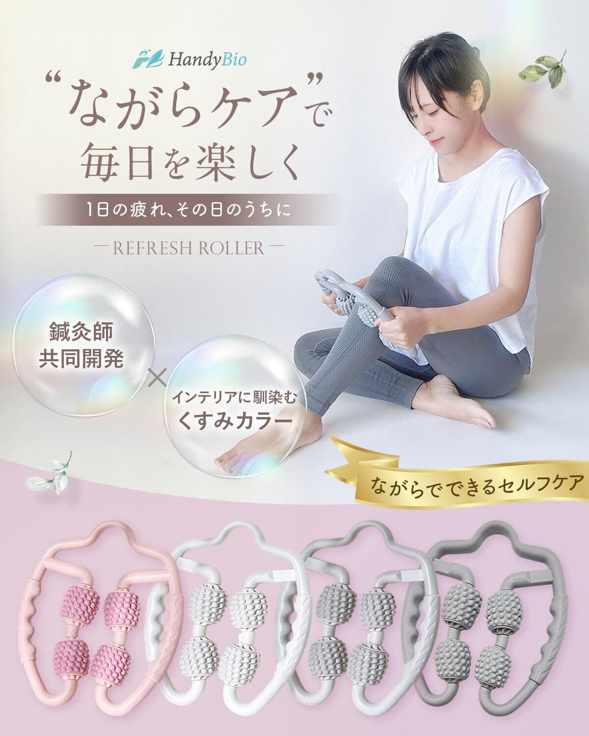 ️【マッサージのプロ共同開発】マッサージの専門家、鍼灸師の先生と共同開発により生まれたお洒落なマッサージローラー。おうち時間に気軽にセルフマッサージ出来るよう、インテリアに合う色味で開発しました。