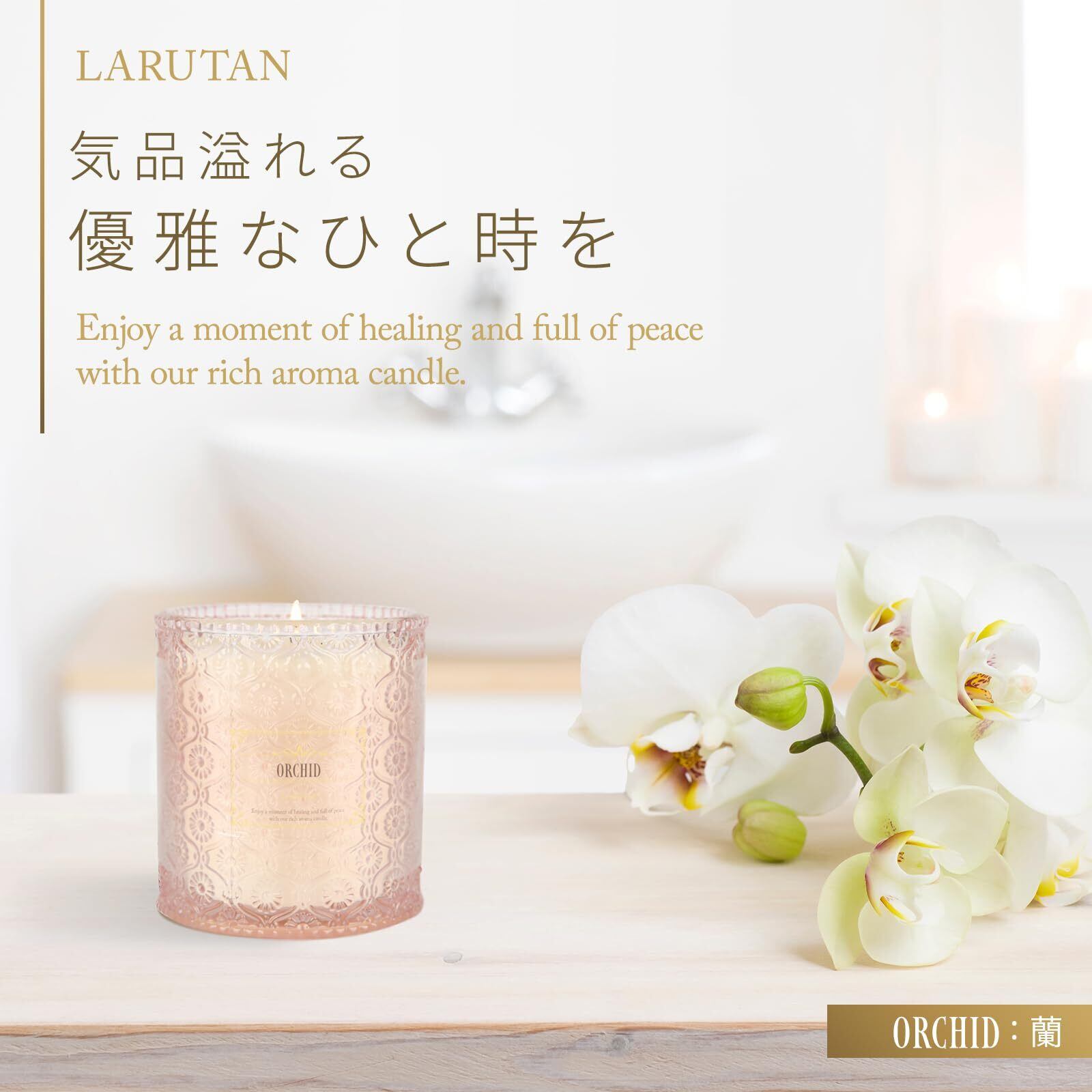 LARUTAN アロマキャンドル ラベンダー 蘭 新緑 タンジェリン&バニラ ジャスミン 燃焼時間80時間 550gギフト プレゼント (550g蘭)