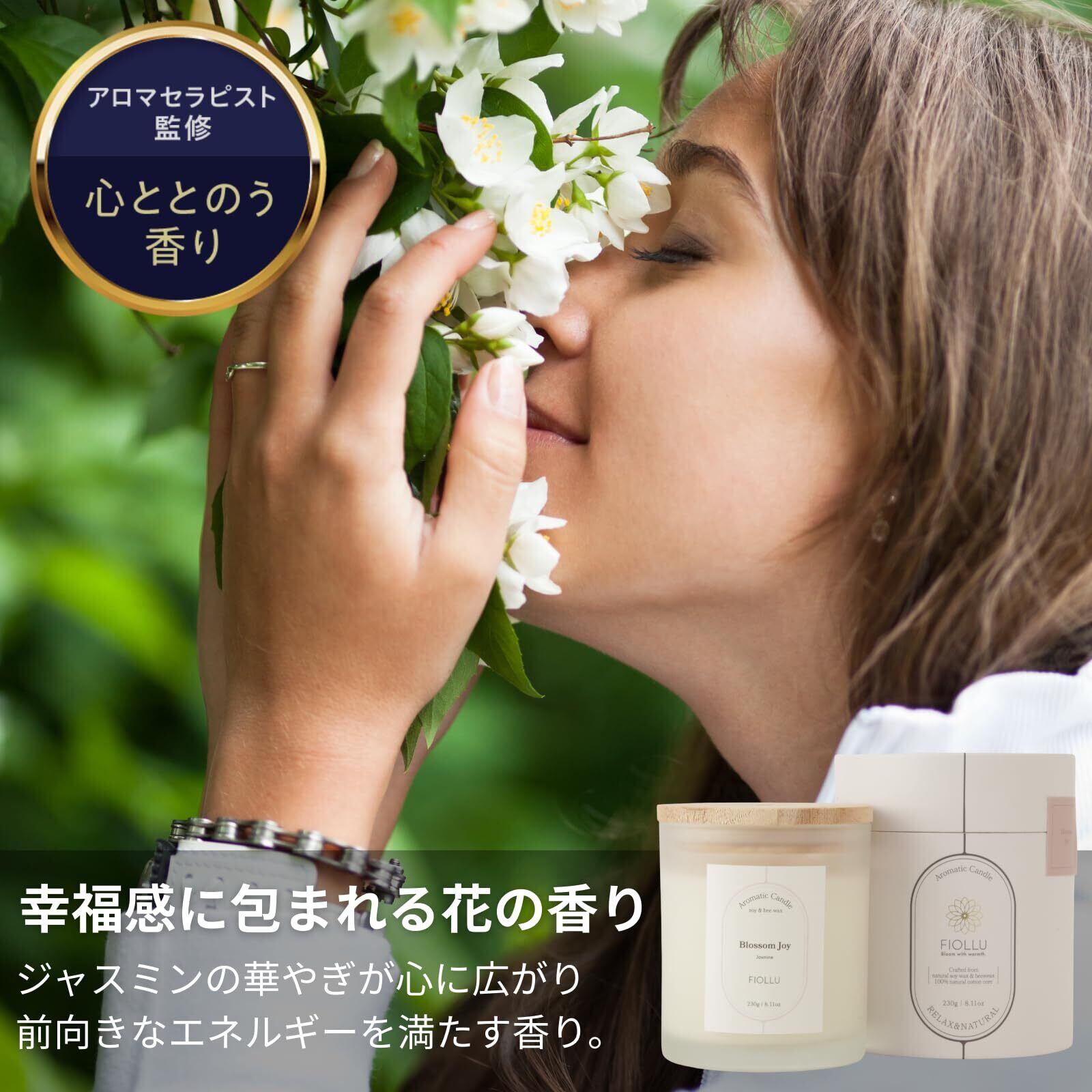 【新着商品】アロマキャンドル 燃焼80時間 (ジャスミン)天然ソイワックス&蜜蝋 癒し 無煙綿芯 ギフト Blossom Joy (400g)