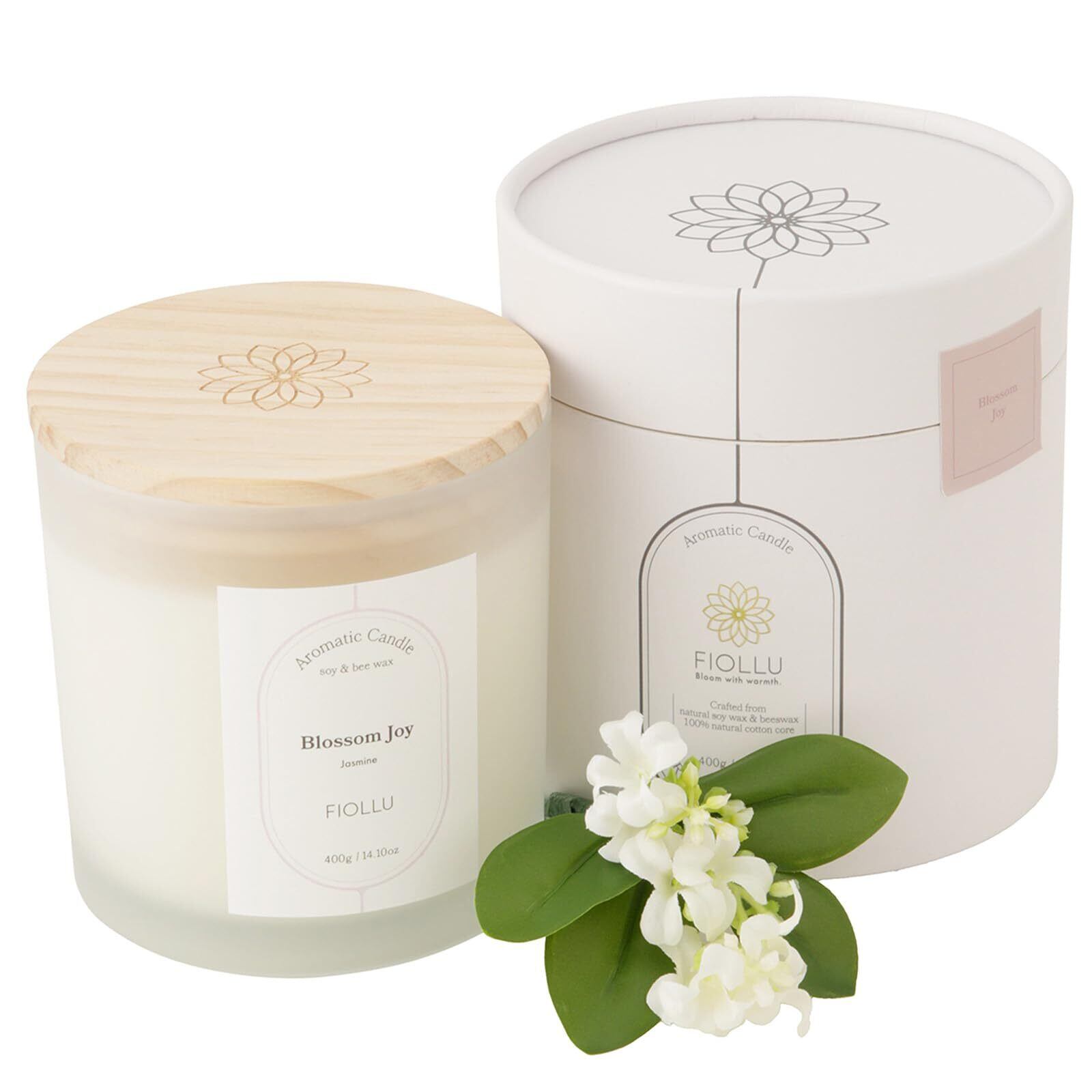 アロマキャンドル 燃焼80時間 (ジャスミン)天然ソイワックス&蜜蝋 癒し 無煙綿芯 ギフト Blossom Joy (400g)
