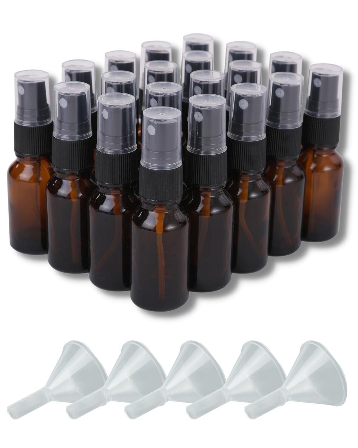 Chocople 遮光瓶 スプレーボトル 精油 アロマオイル 詰め替え 保存用 ガラス製 20本セット ブラウン 漏斗付き (30ml)