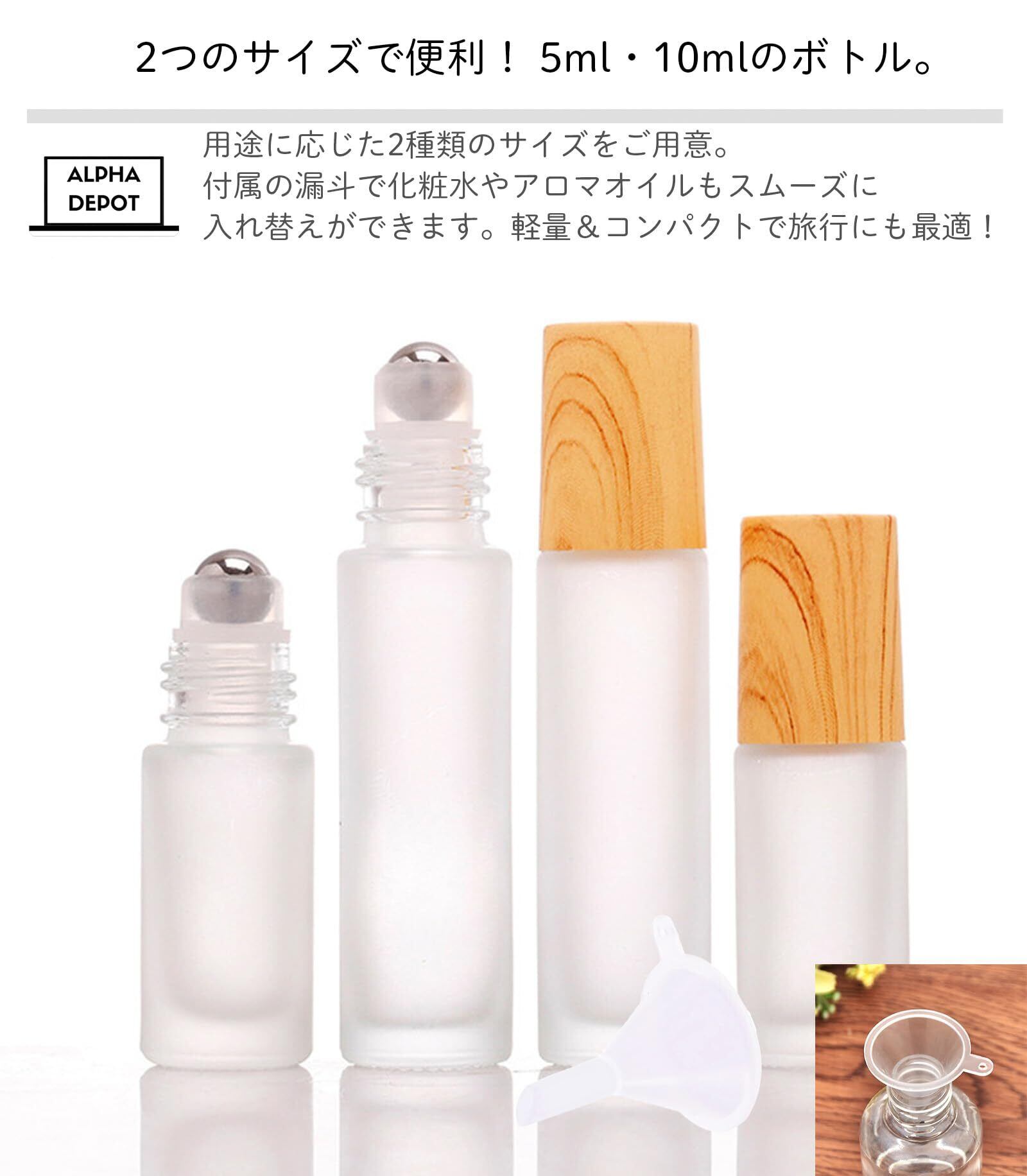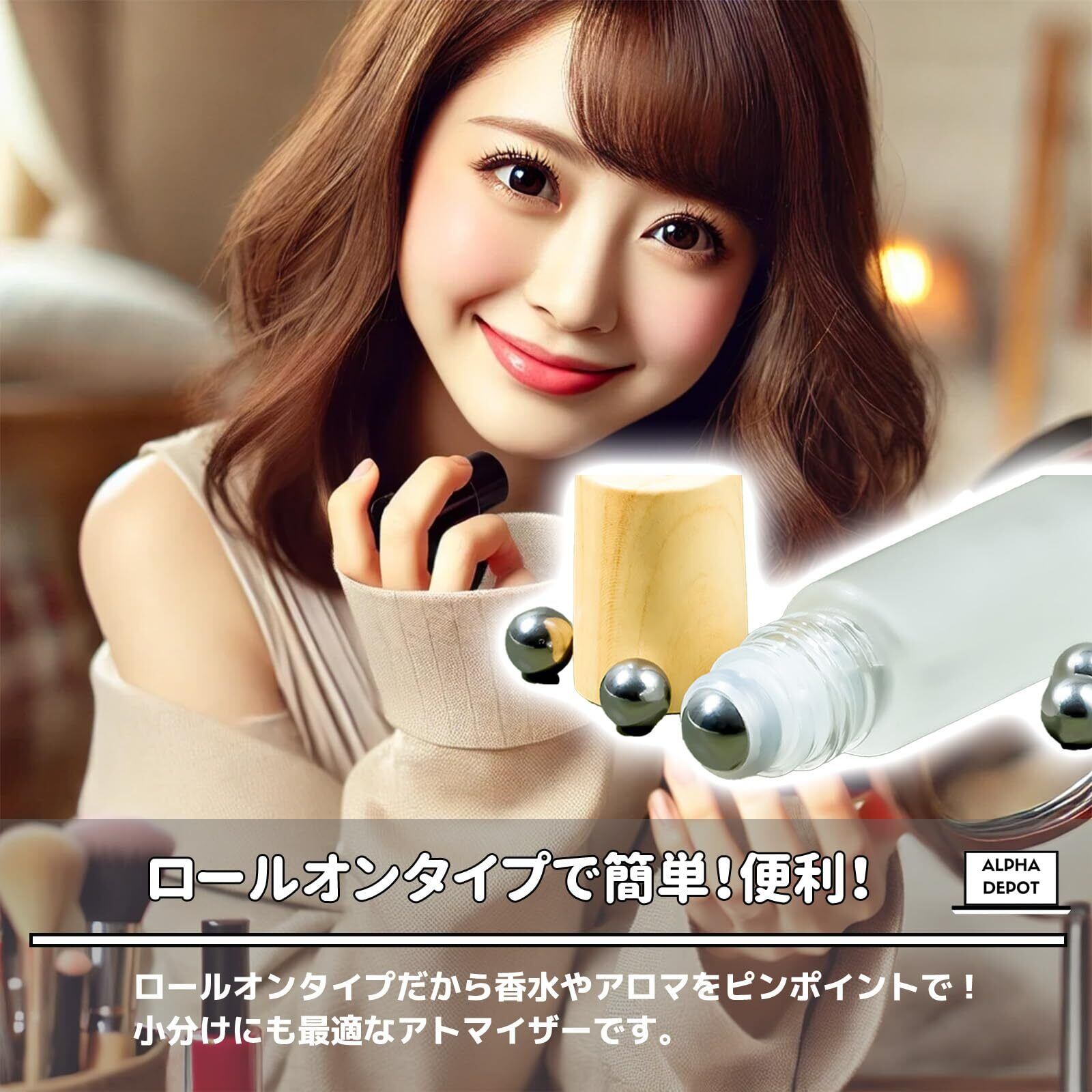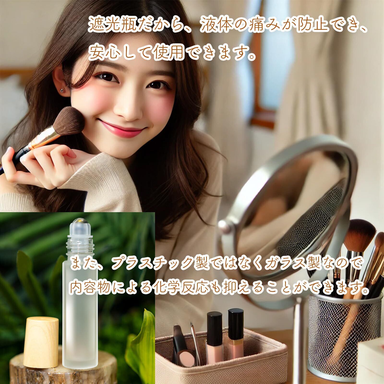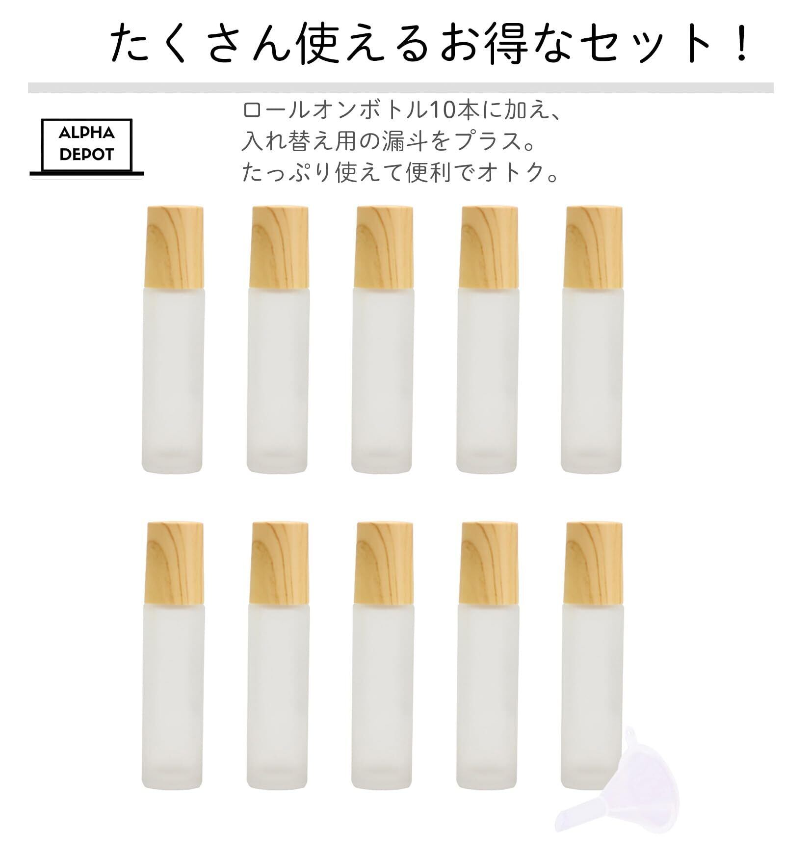 ロールオンボトル 遮光瓶 アトマイザー アロマ 容器 精油 ボトル 木目キャップ + 漏斗付き (10ml × 10個)