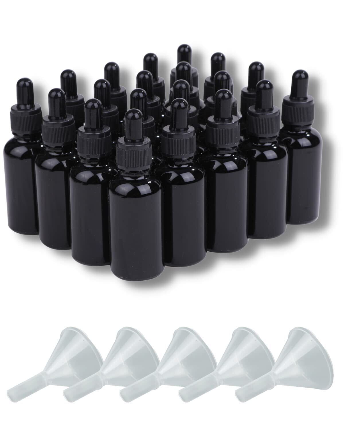 Chocople 遮光瓶 スポイト付き 精油 アロマオイル 詰め替え 保存用 ガラス製 ブラック 漏斗付き 20本セット(30ml)