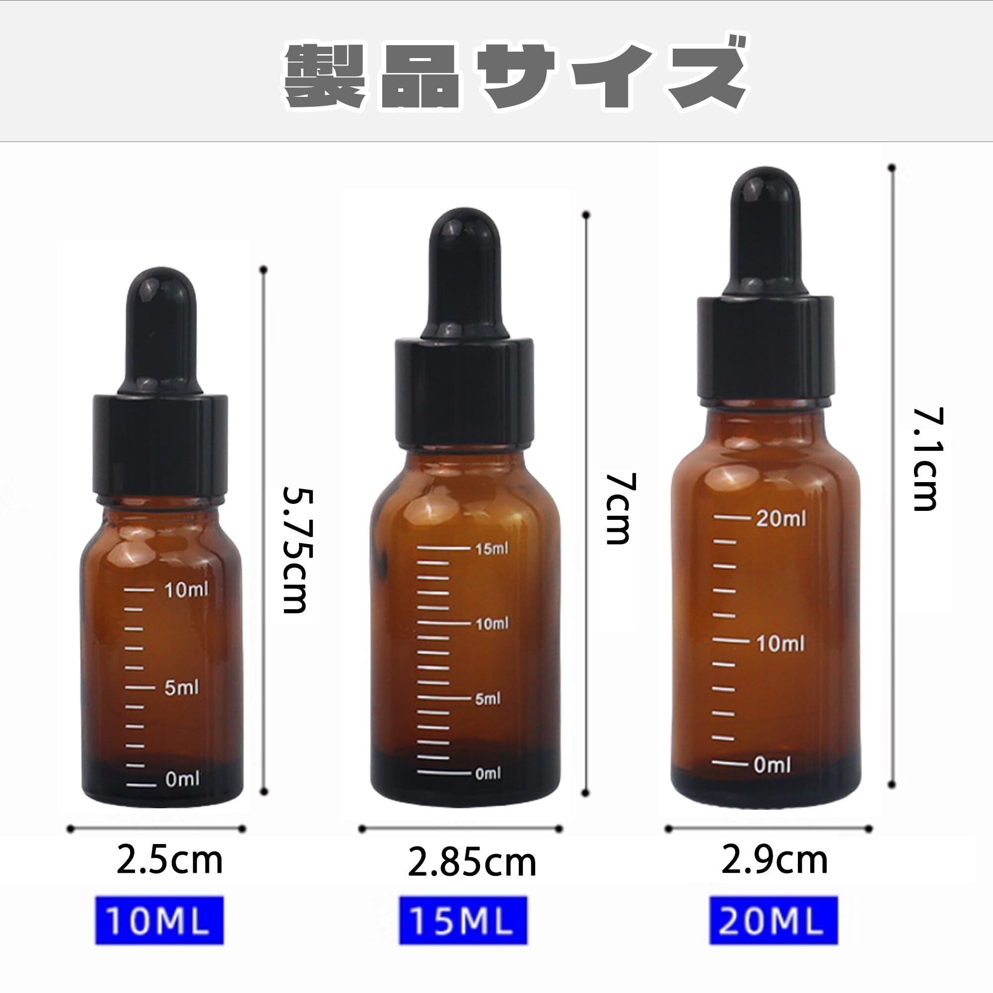 【容量バリエーション】スポイトボトルは10ml/15ml/20mlの3種類の容量から選択可能。4本セットで、精油・芳香水・香水など液体の小分け保存に最適。