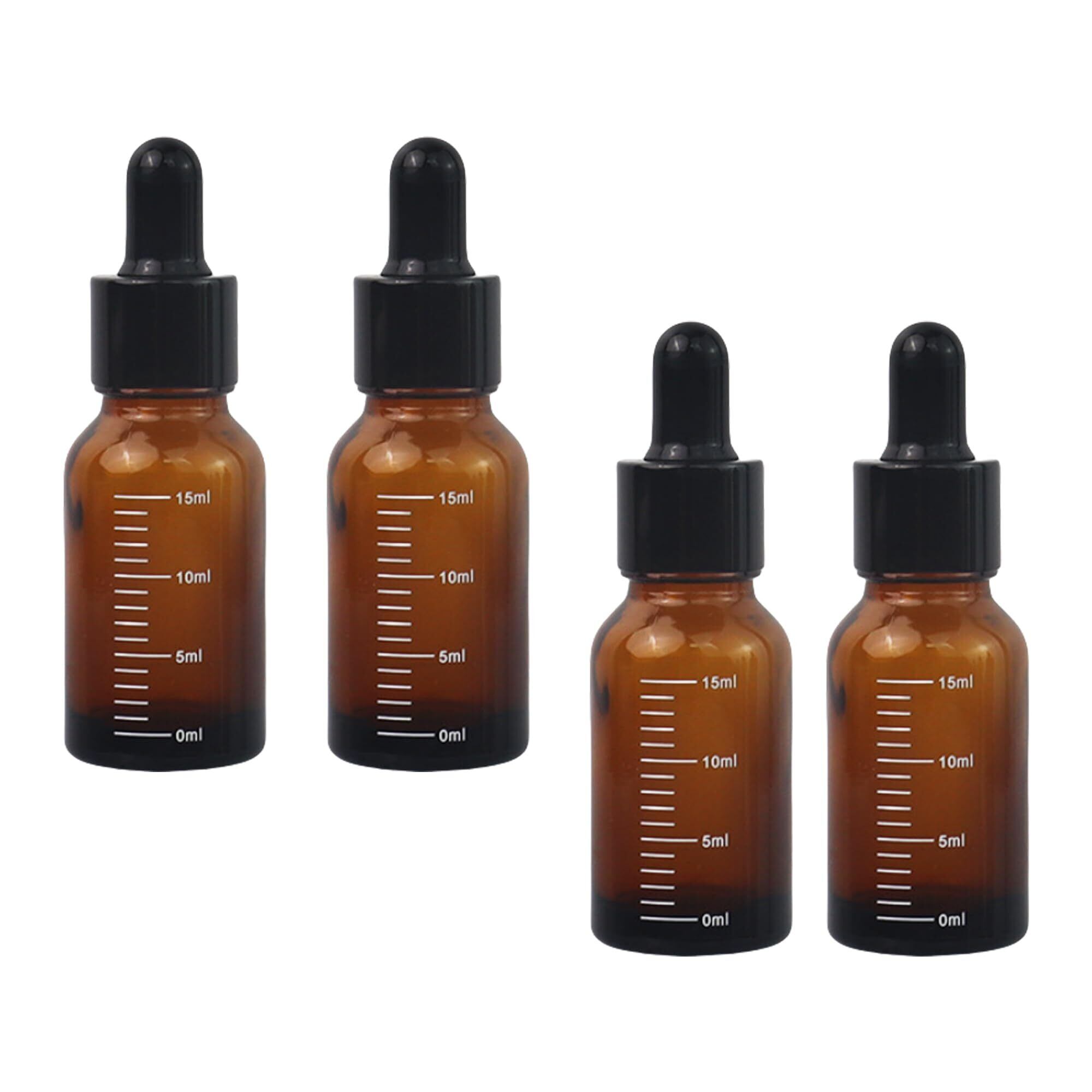 遮光スポイト瓶 15ml 4本セット ブラウン ガラス製 アロマオイルボトル マッサージ、フレグランス、アロマテラピー 精油容器 ガラススポイトボトル 小分け用