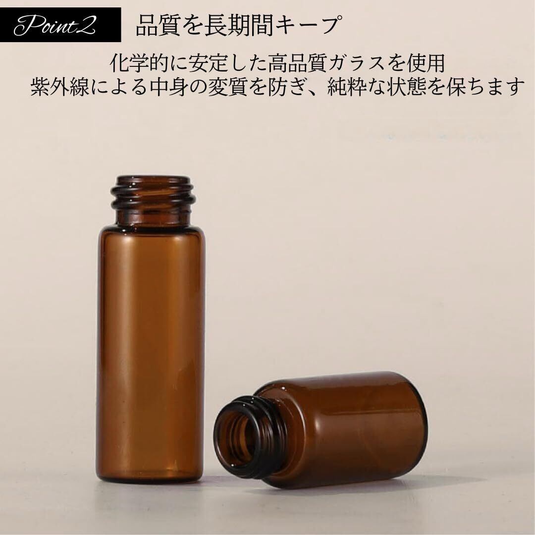 【上質ガラスの信頼性と遮光効果】高品質なガラス製で化学反応の心配なし。アロマオイルや香水の純度を保ち、品質を長期間維持。クリアで遮光性を備えたボトルは、中身の劣化を防ぎつつ、使用量の確認も容易。日々の美容ルーティンに安心と信頼をお届けします。
