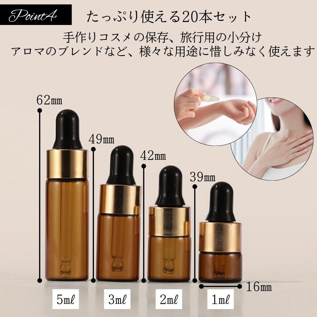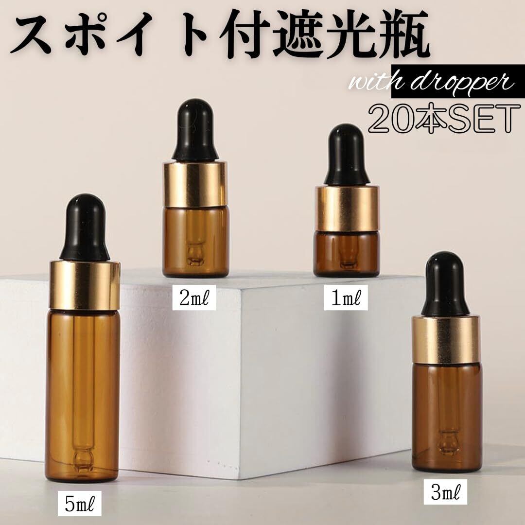 【商品詳細】セット本数:20本 容量:1ml / 2ml / 3ml / 5ml カラー:ブラウン 材質:ガラス、シリコンゴム、PP