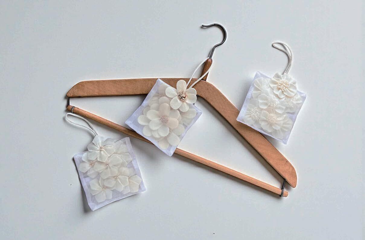 ソラフラワーで作られた繊細で小さなソラフラワーをオーガンジーに詰めたエレガントなサシェ。紐付きなのでインテリアとして、クローゼットなどにかけたり置いたりして楽しめます。