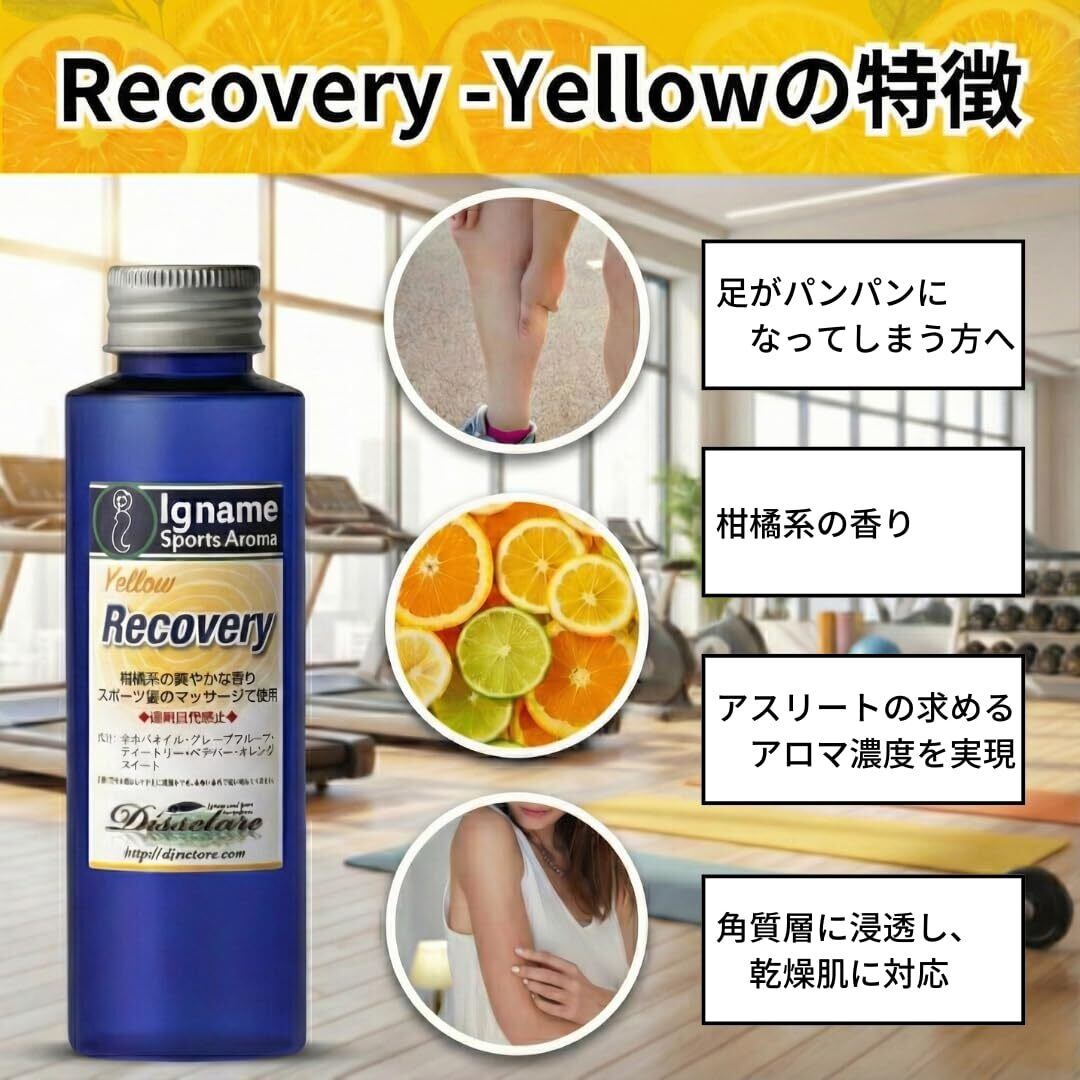 【特価セール】イナーメ・スポーツアロマ リカバリー オイル イエロー (30ml リキッド) 柑橘系の香り ホホバオイル 100% (マッサージ用) レース後 運動時 就寝前 イナーメオイル マッサージオイル